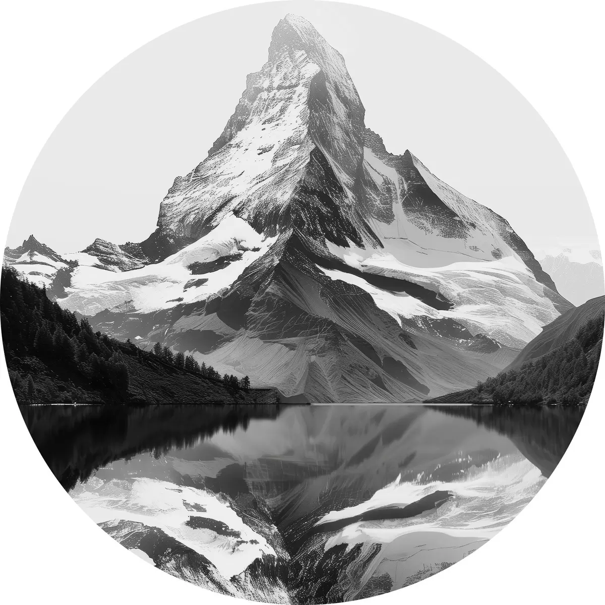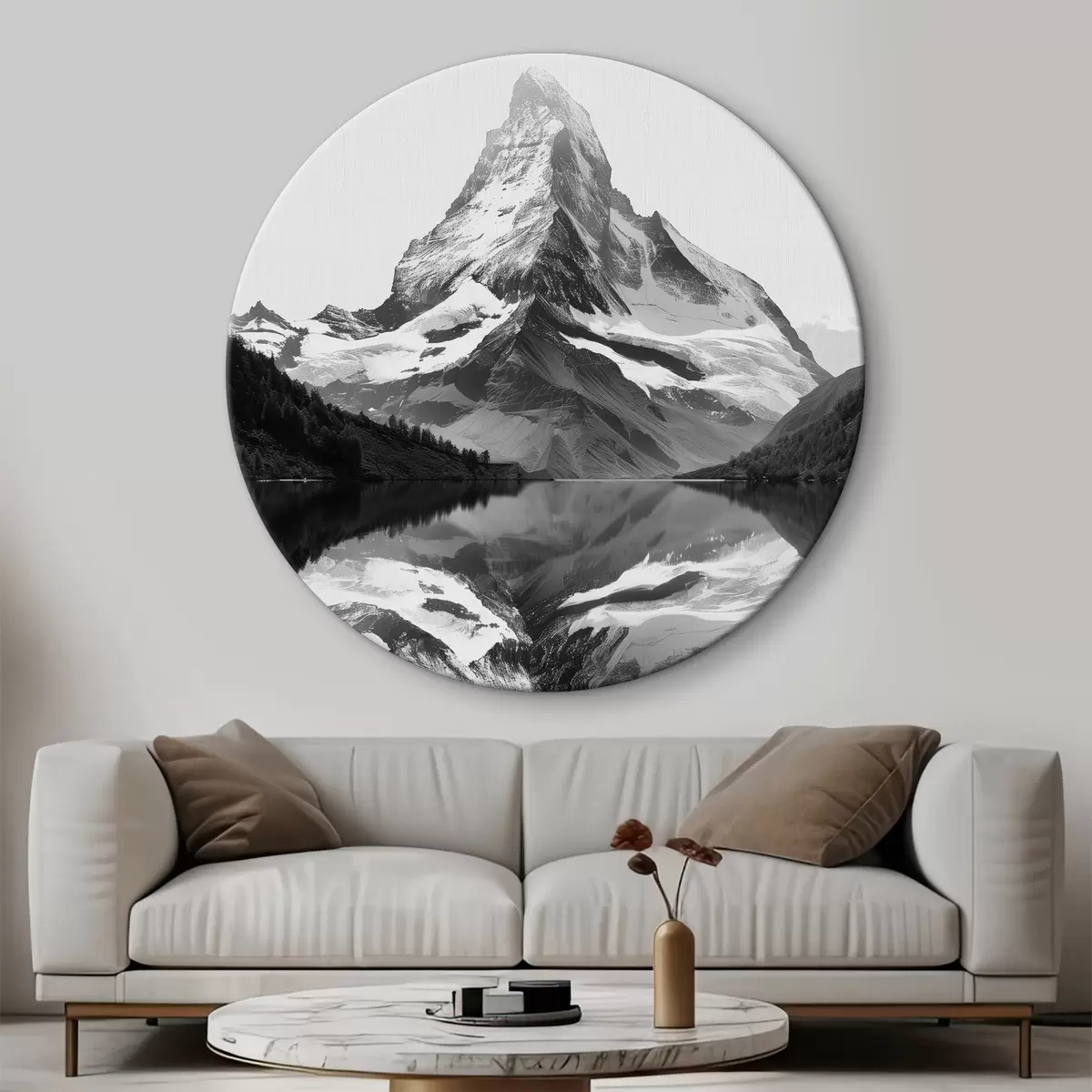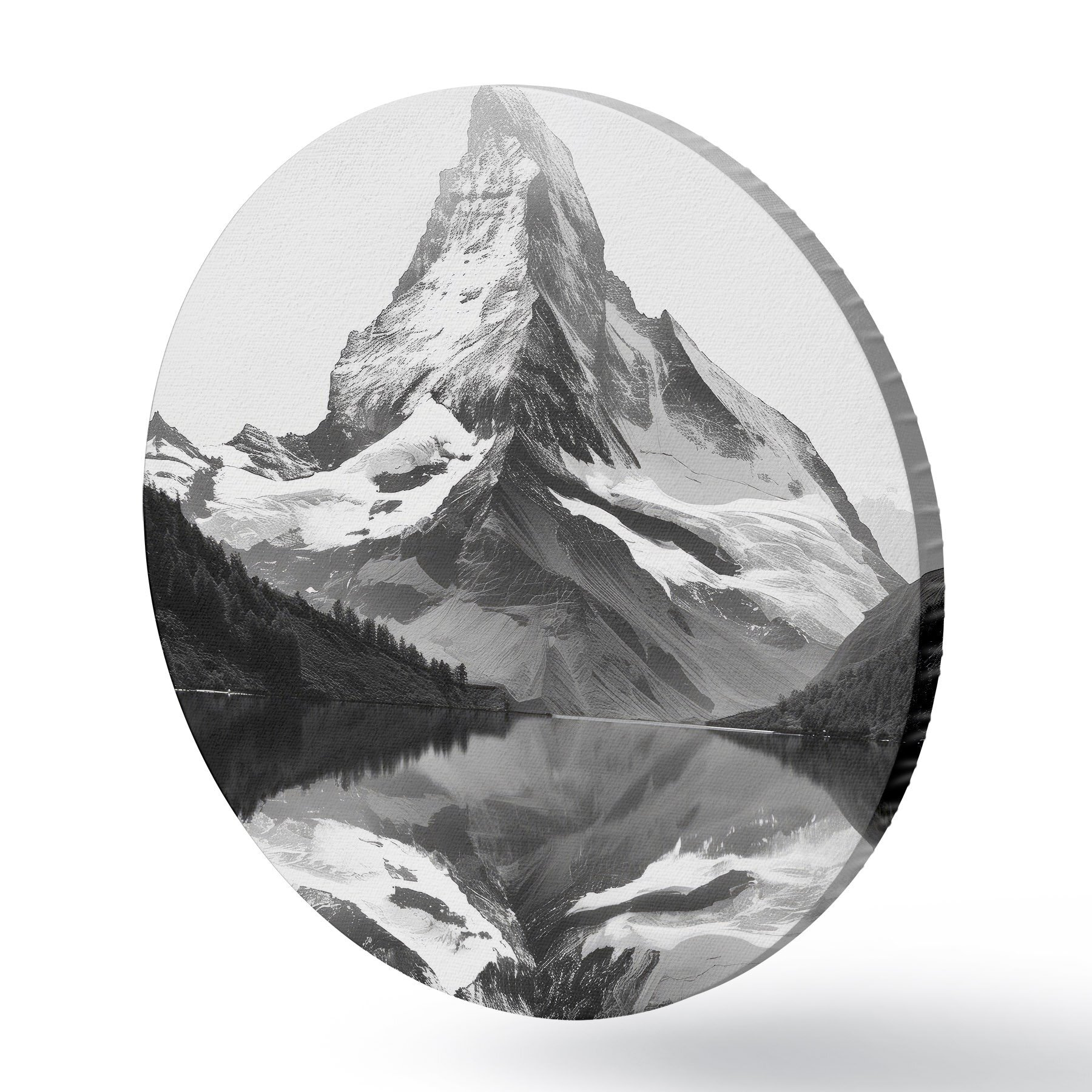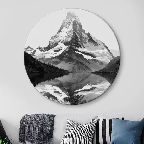 Quadri rotondi Immagine in bianco e nero di una montagna in stile minimalista r39638