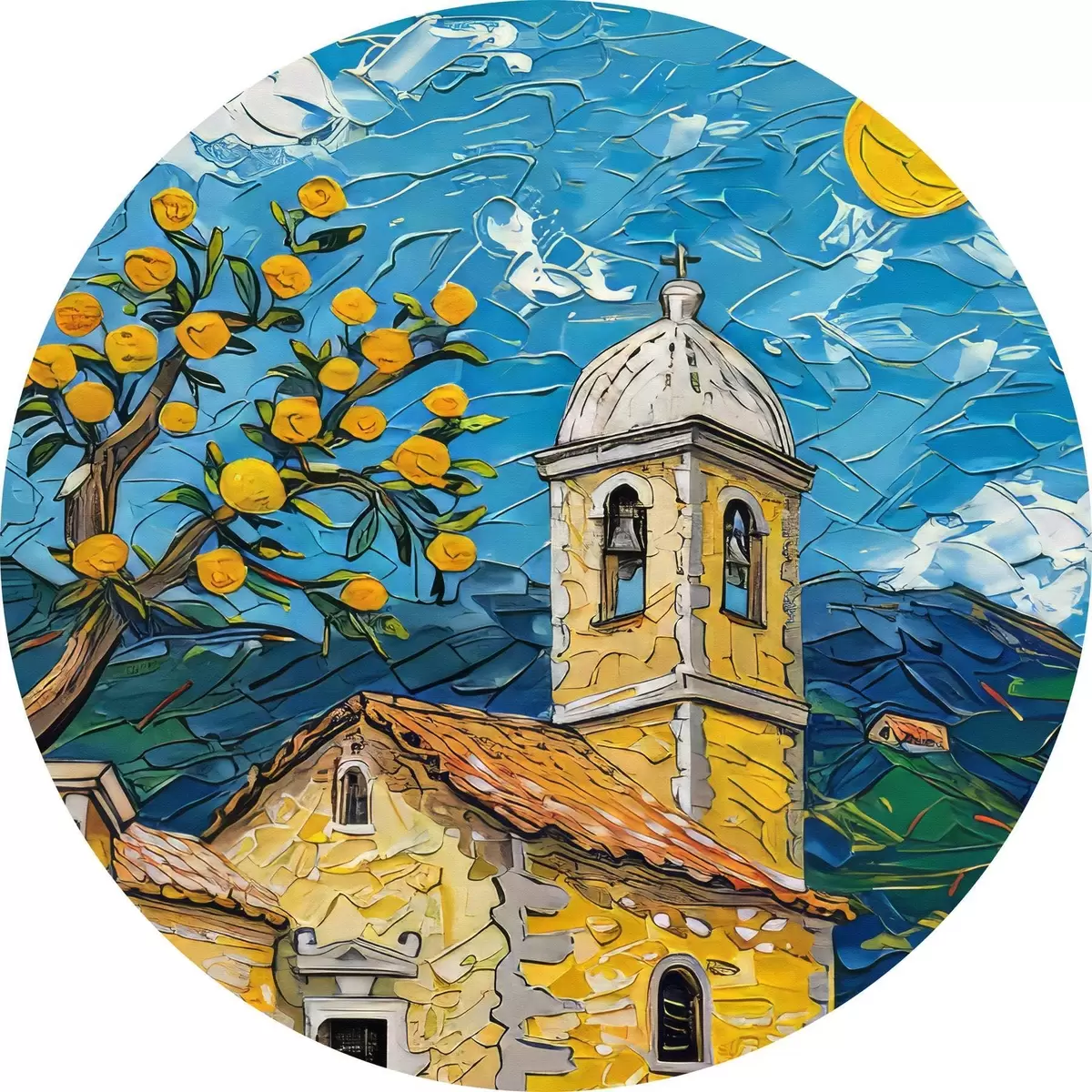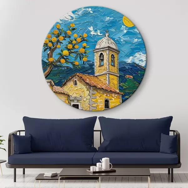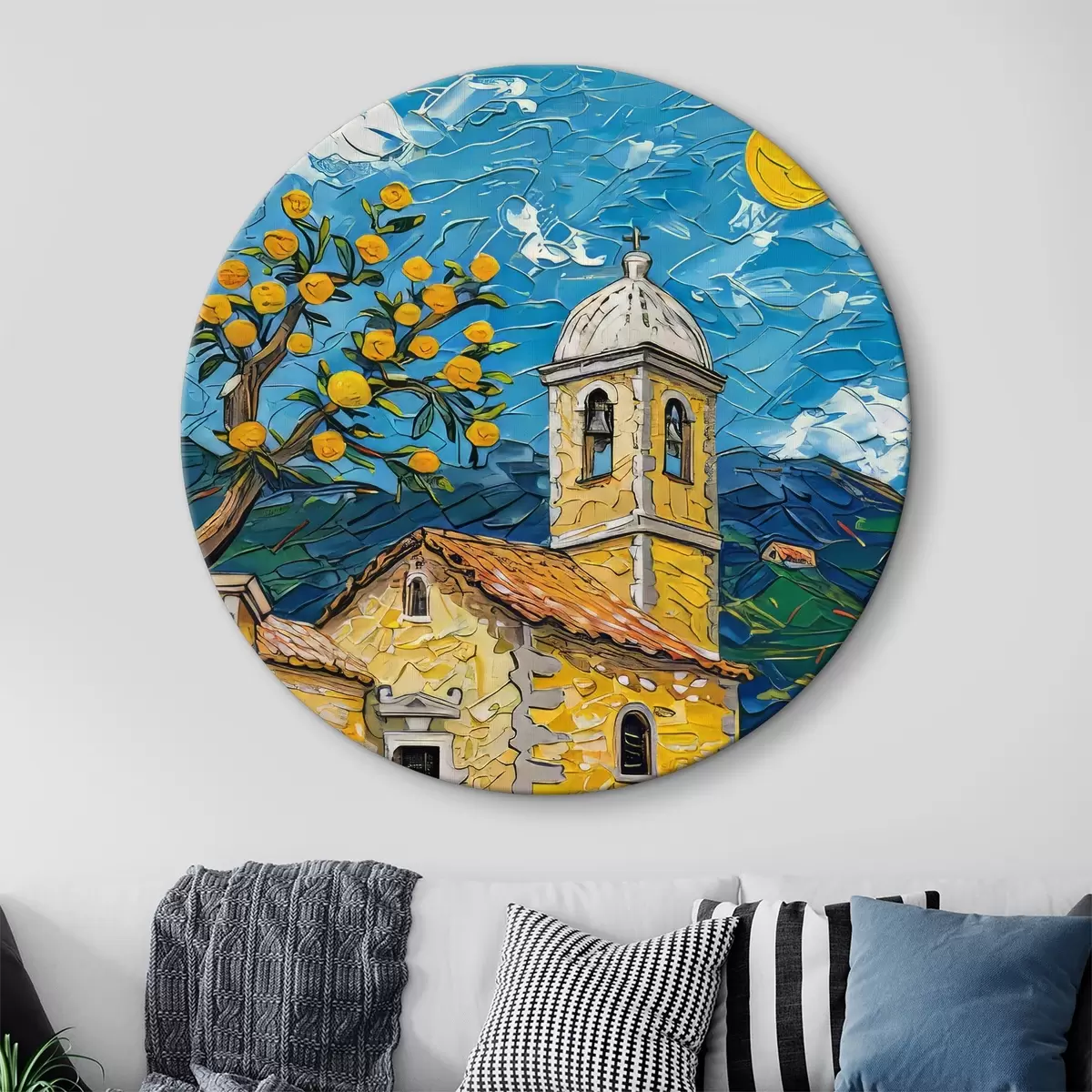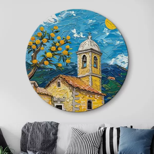 Quadri rotondi Simone Wunderlich: villaggio francese nella suggestiva luce della sera r39656