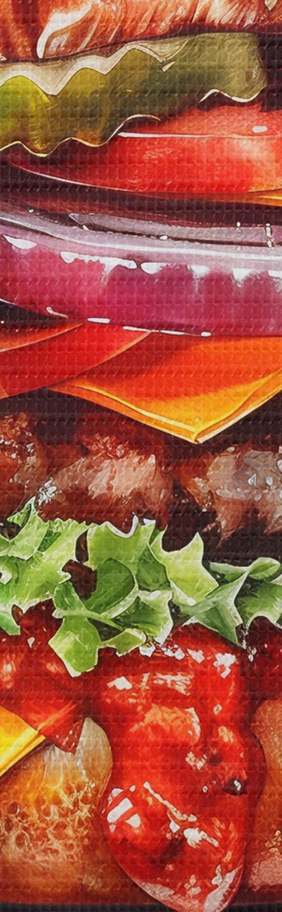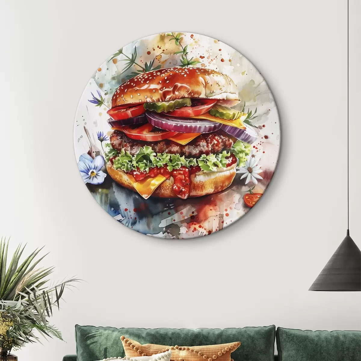 Quadri rotondi Gustoso hamburger con carne, floreale, acquerello, arte alimentare r39699