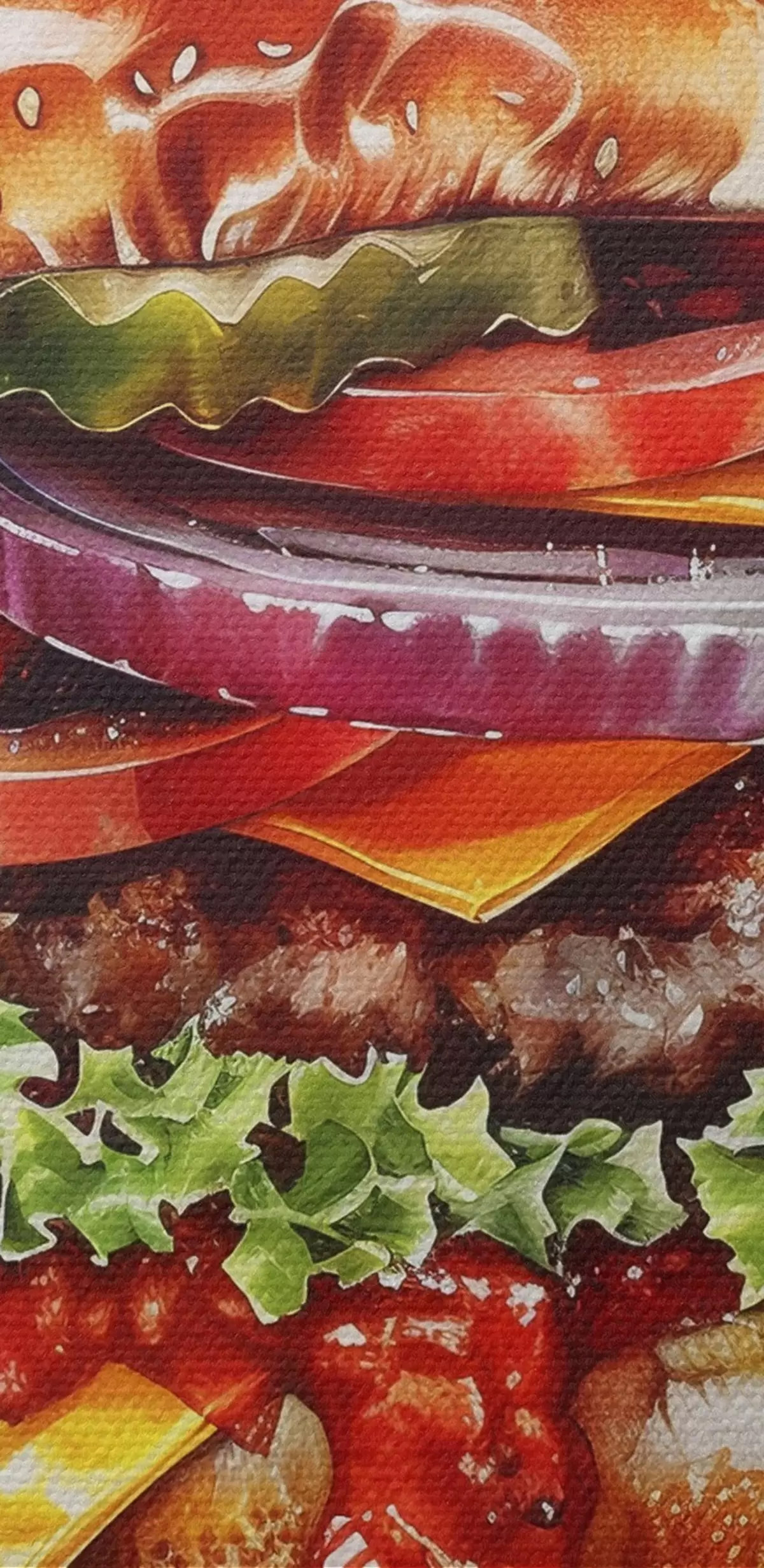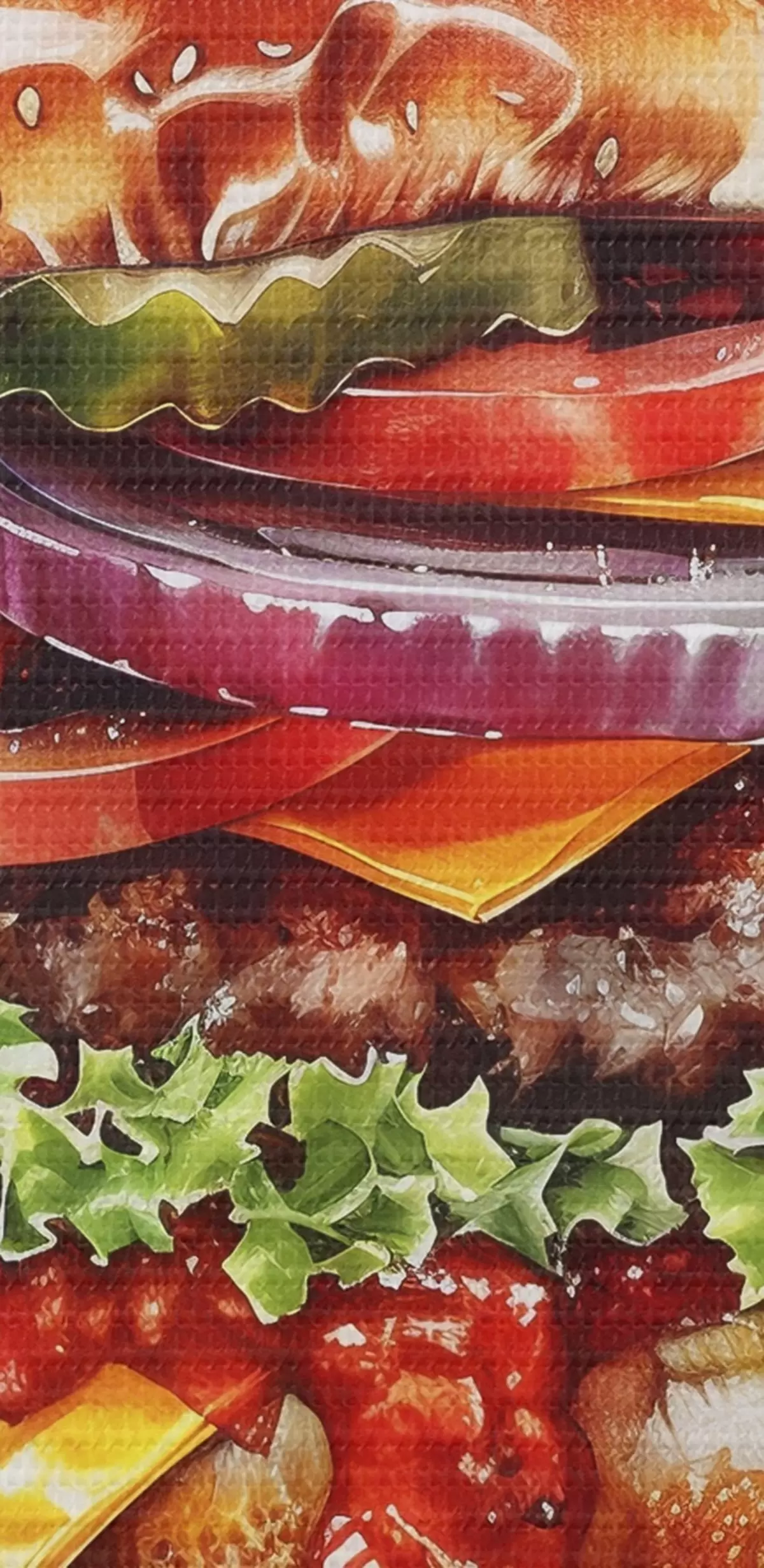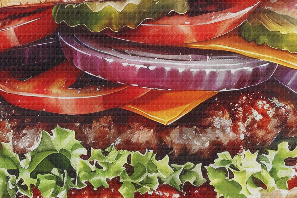 Immagine Gustoso hamburger con carne, floreale, acquerello, arte alimentare Nr r39699