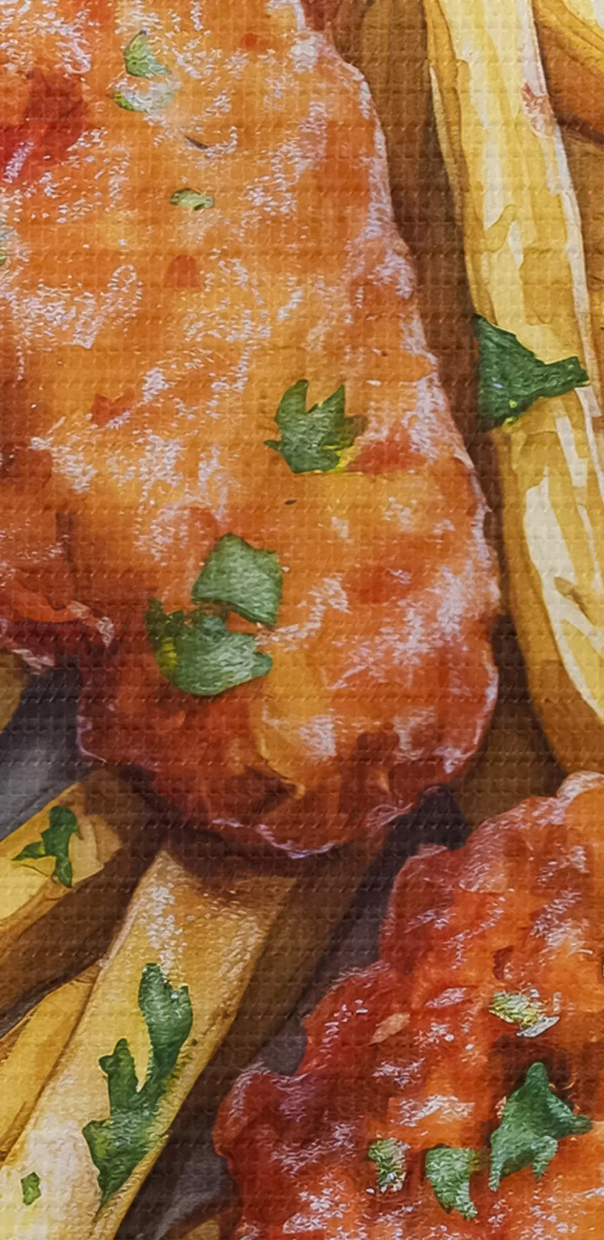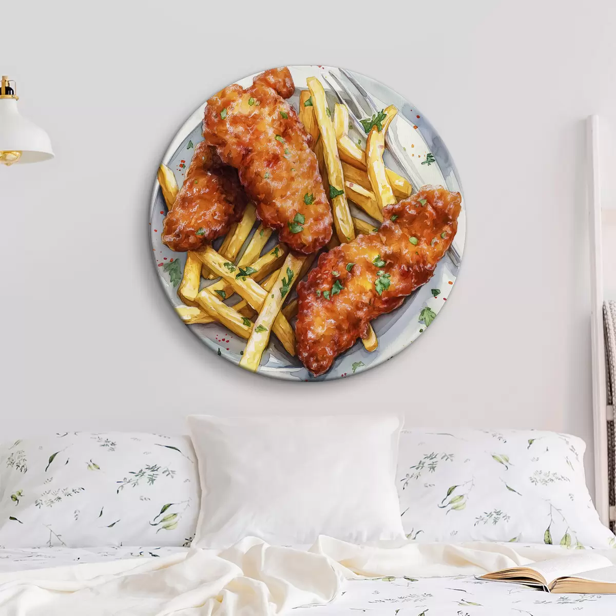 Quadri rotondi Arte alimentare ad acquerello, patatine fritte con pollo arrosto, deliziosa r39708