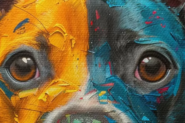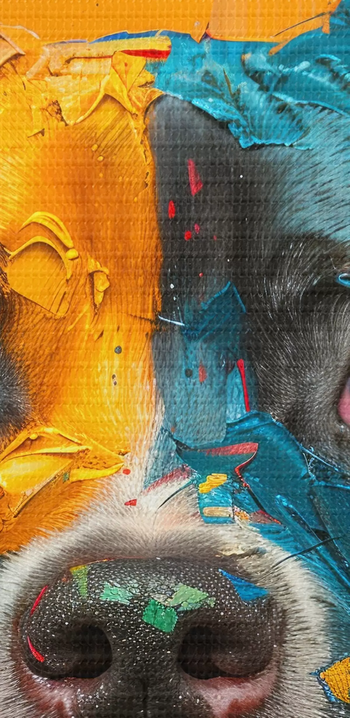 Immagine Ritratto di un Pitbull con pennellate di olio giallo e blu Nr r39722
