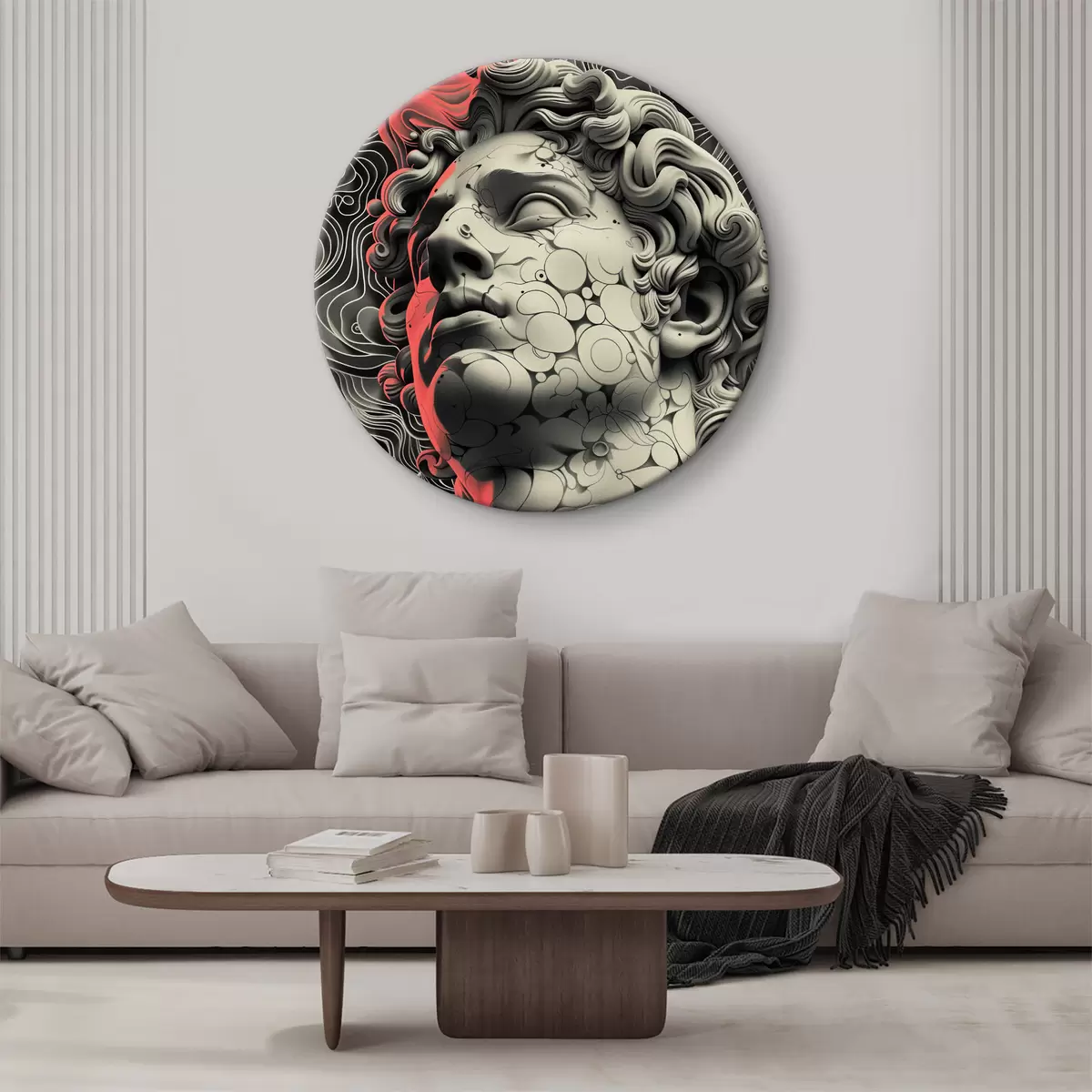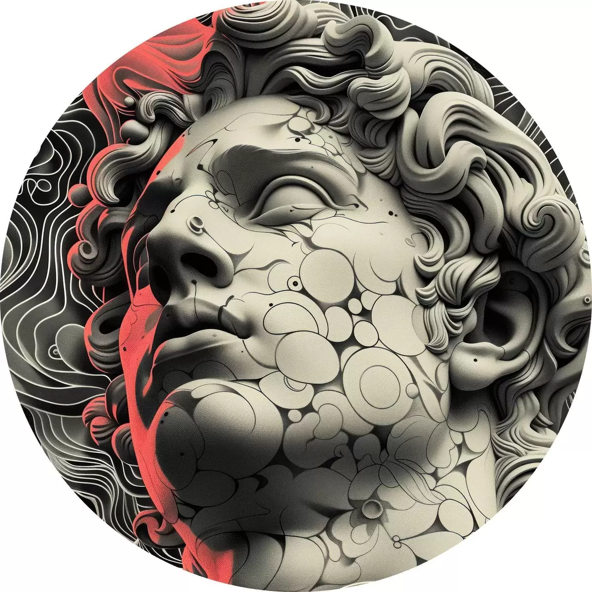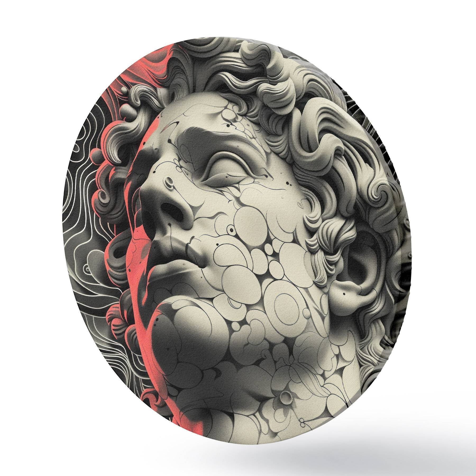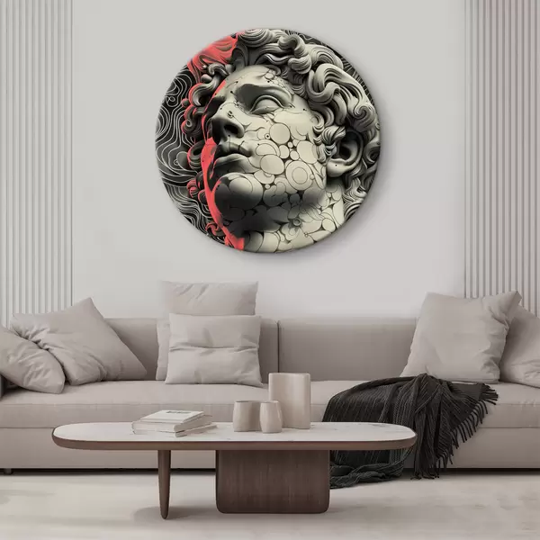 Quadri rotondi Illustrazione lineare in bianco e nero della testa del dio greco Apollo in stile pop art r39763