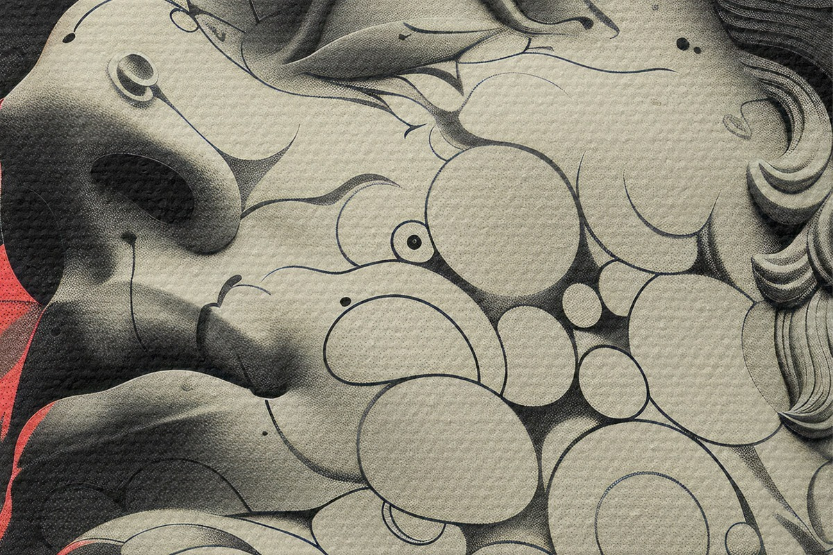 Immagine Illustrazione lineare in bianco e nero della testa del dio greco Apollo in stile pop art Nr r39763