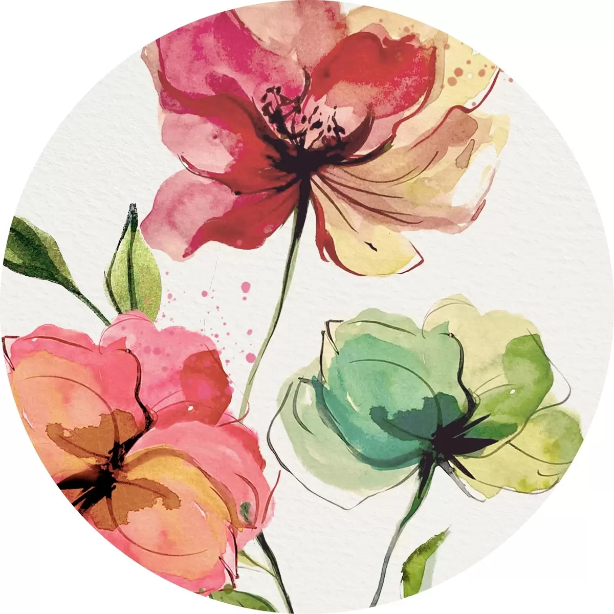 Quadri rotondi Fiori ad acquerelli r39769