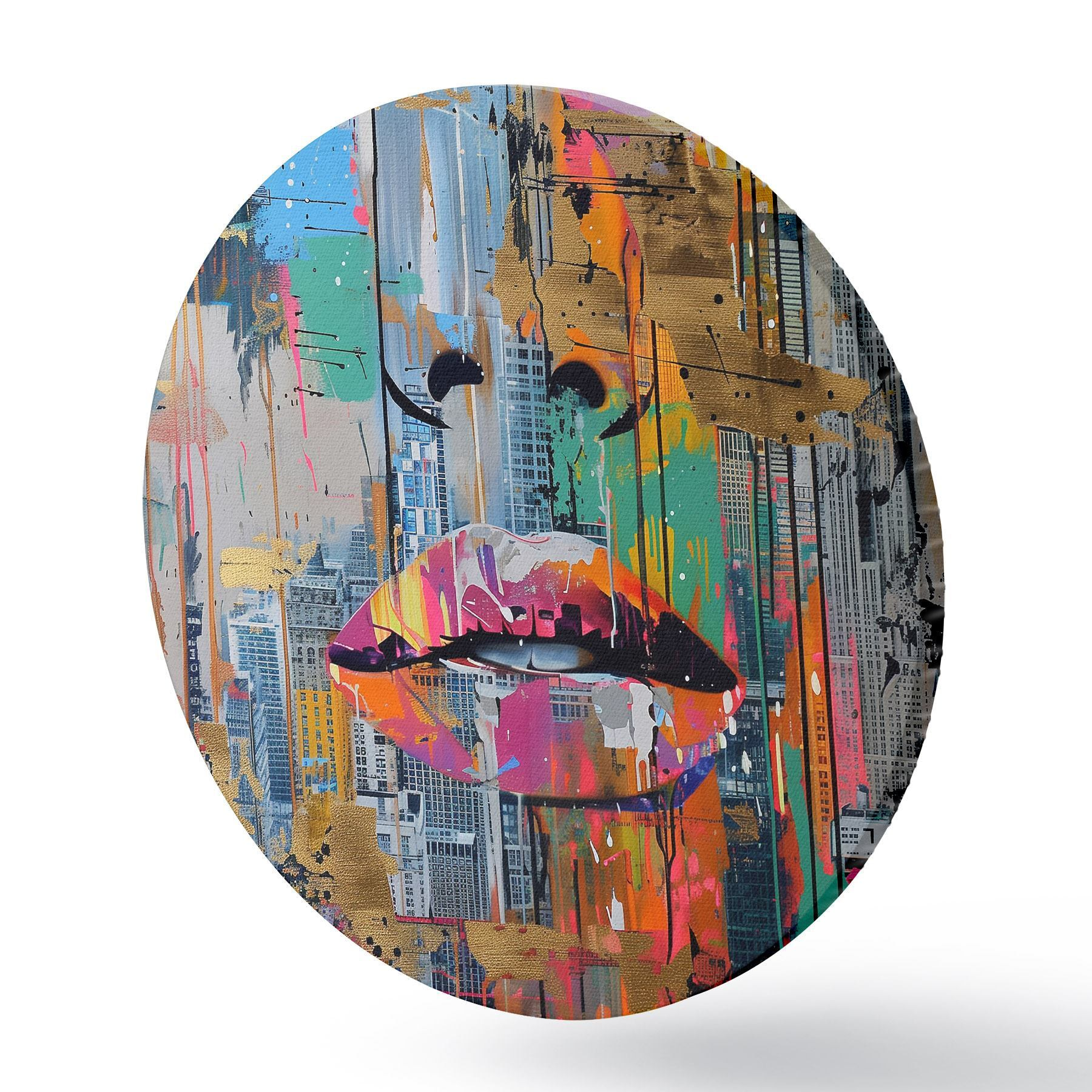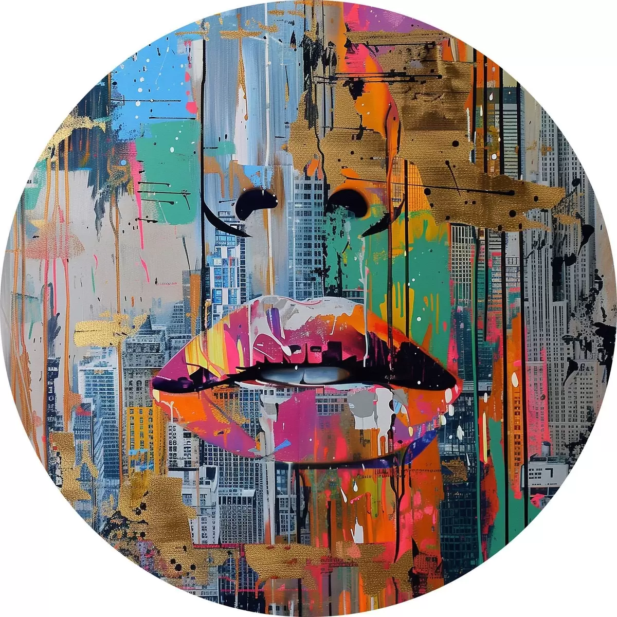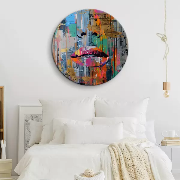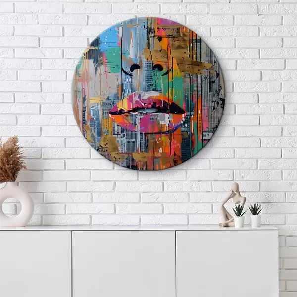 Quadri rotondi Occhi azzurri e vista sulla città r39800