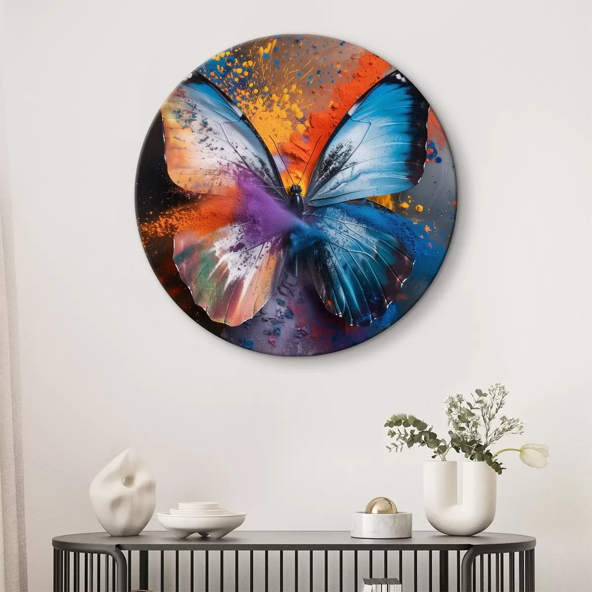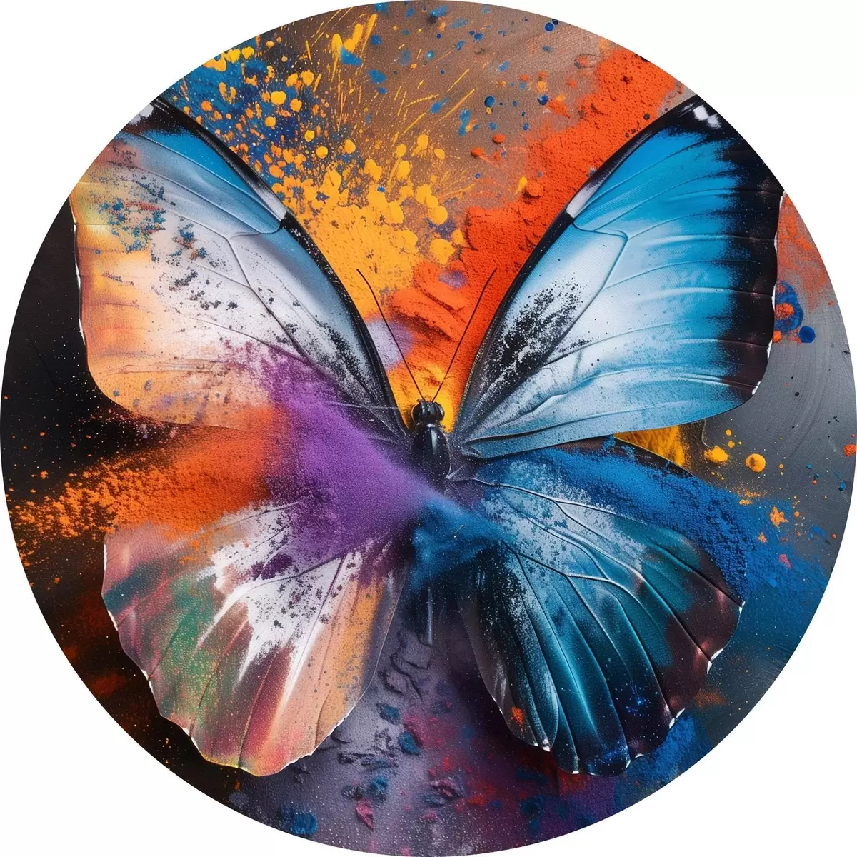 Quadri rotondi Grande farfalla su uno sfondo astratto r39801