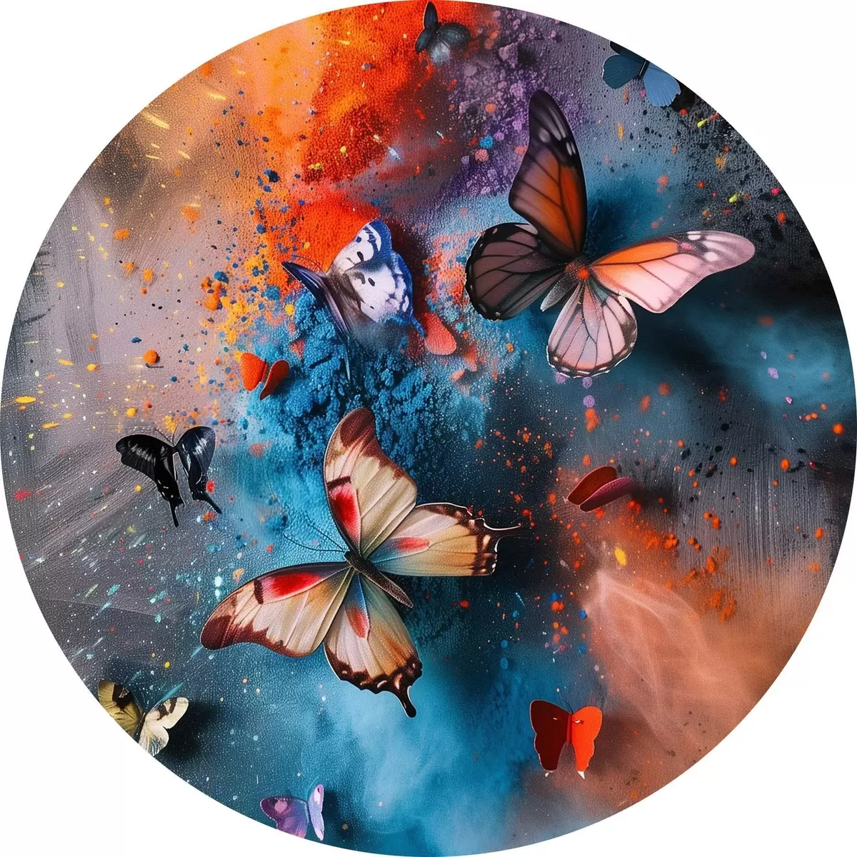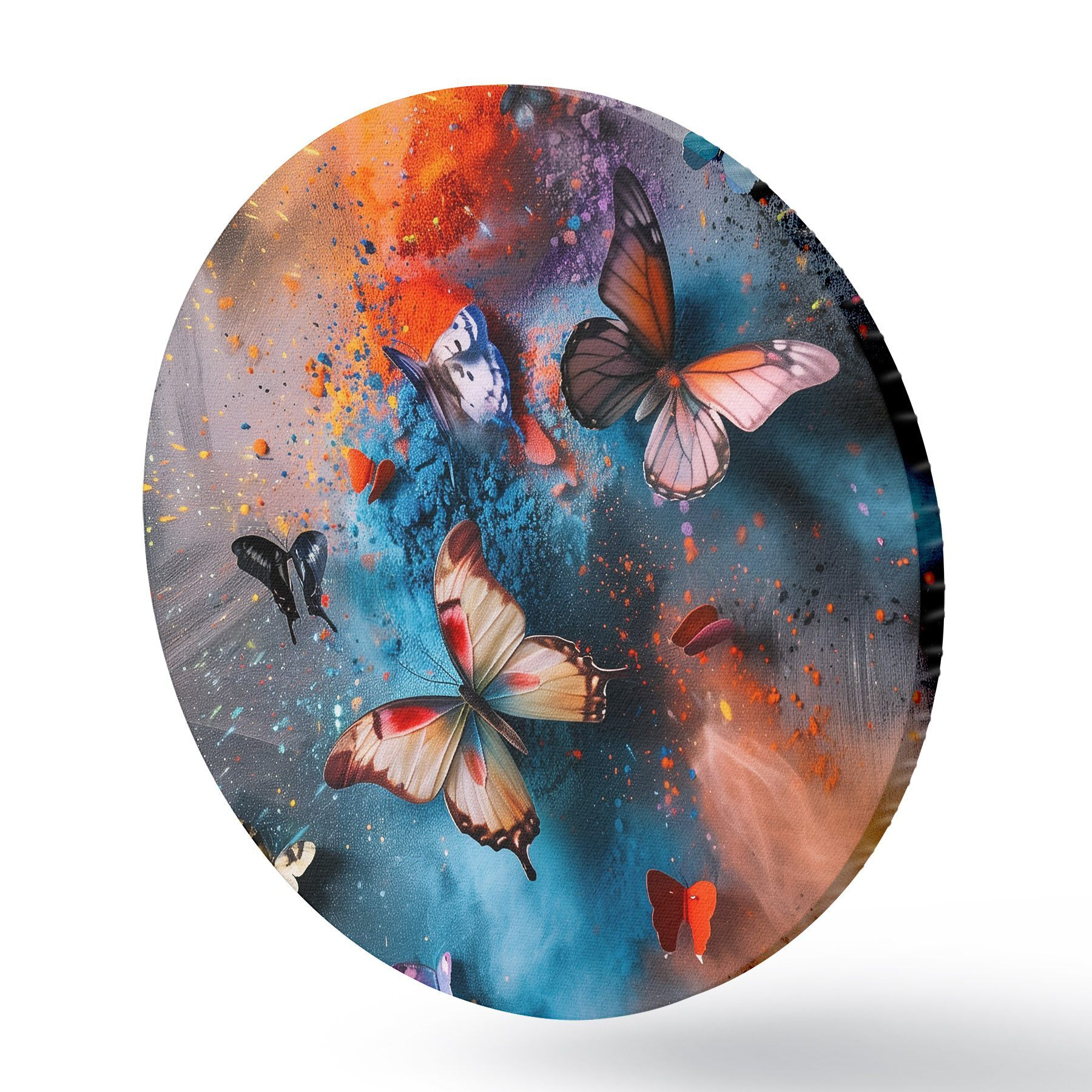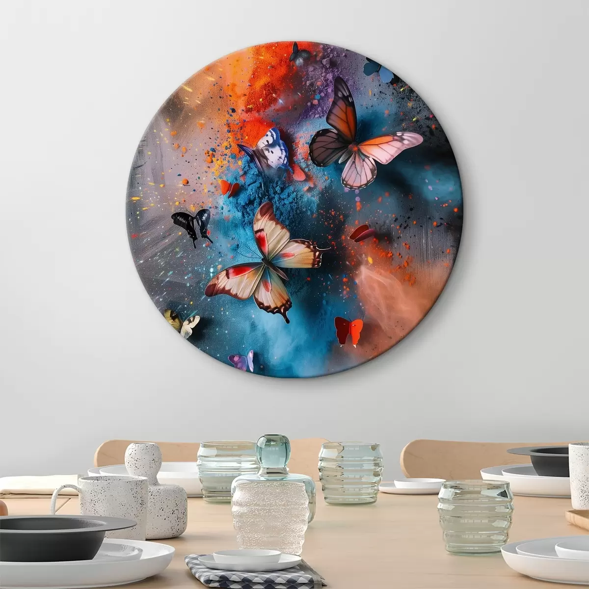 Quadri rotondi Farfalle su uno sfondo di schizzi di vernice r39803