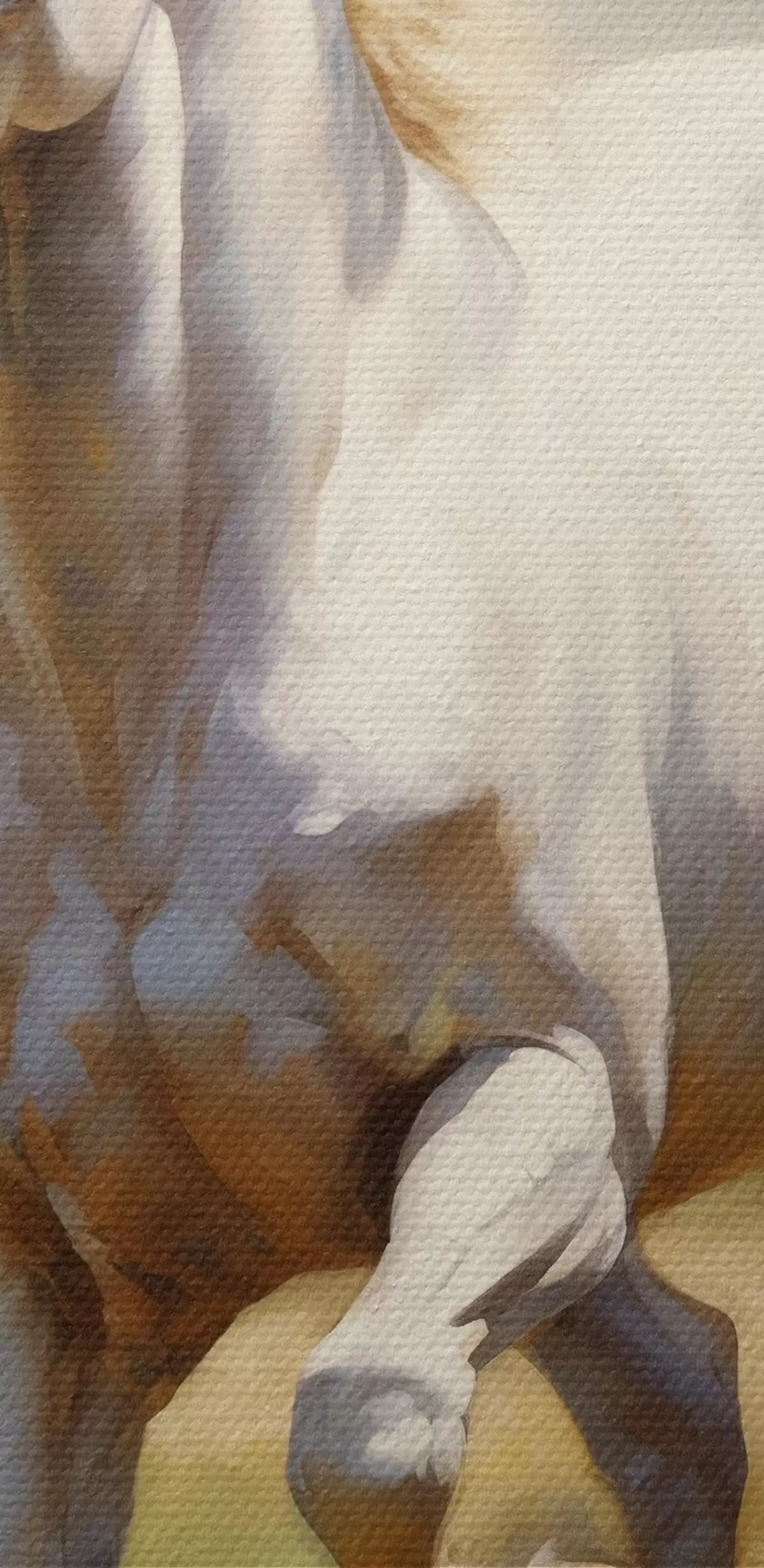 Immagine Cavallo bianco che galoppa attraverso il dipinto ad olio del prato Nr r39818
