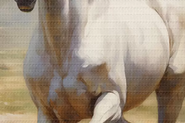 Immagine Cavallo bianco che galoppa attraverso il dipinto ad olio del prato Nr r39818