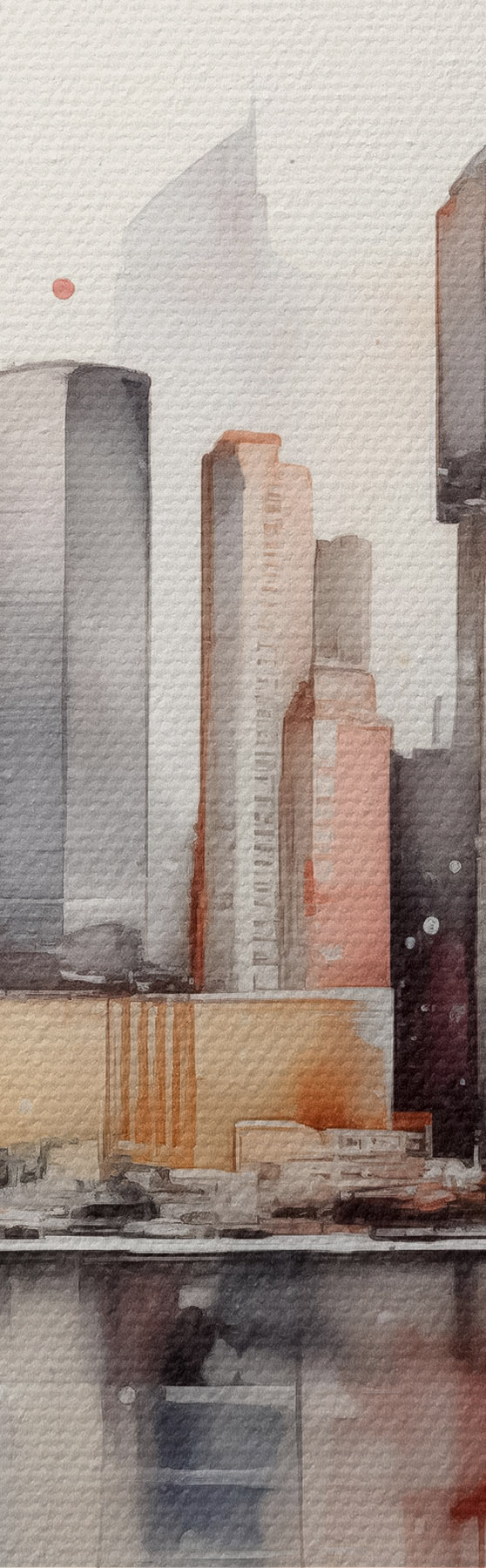 Immagine Vista di New York City, sagome di edifici, acquerello Nr r39828
