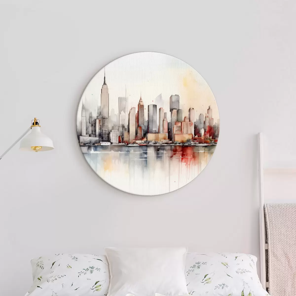 Quadri rotondi Vista di New York City, sagome di edifici, acquerello r39828