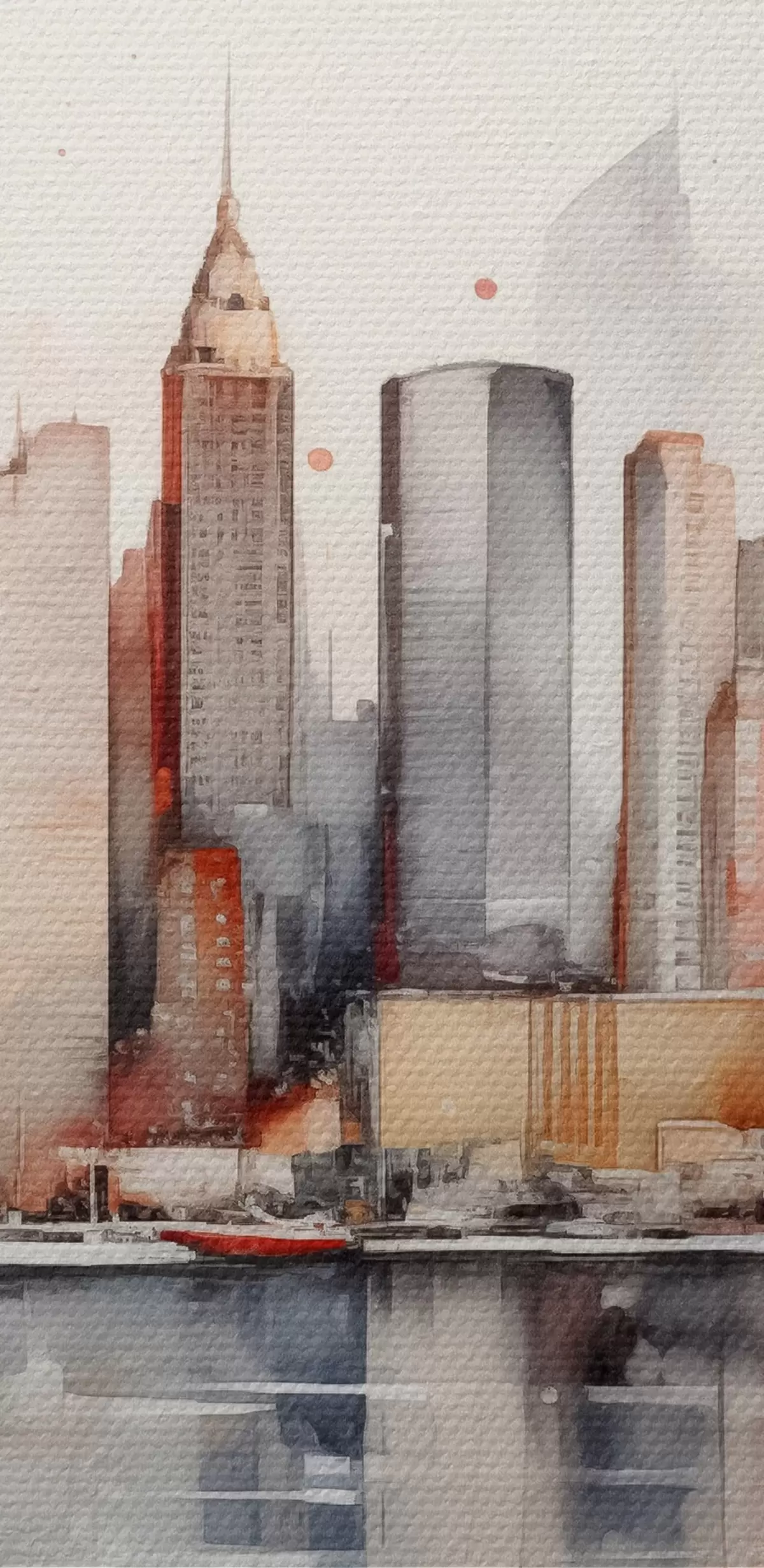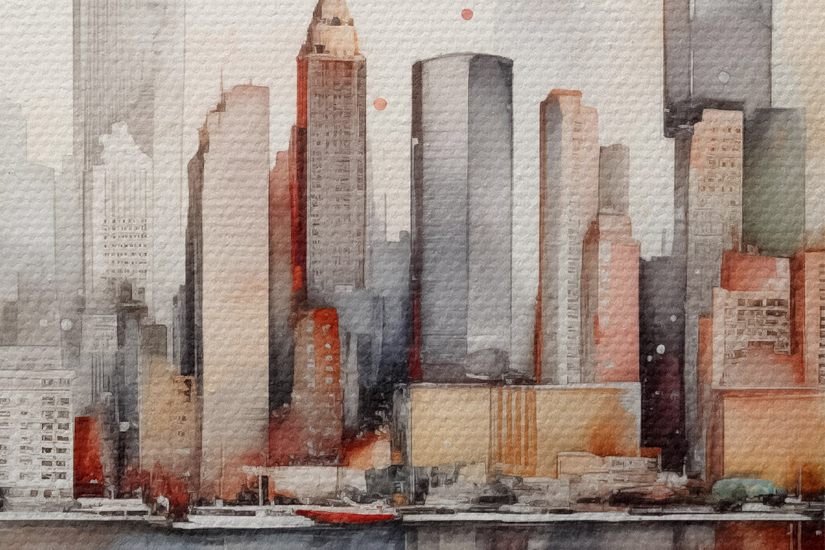 Immagine Vista di New York City, sagome di edifici, acquerello Nr r39828