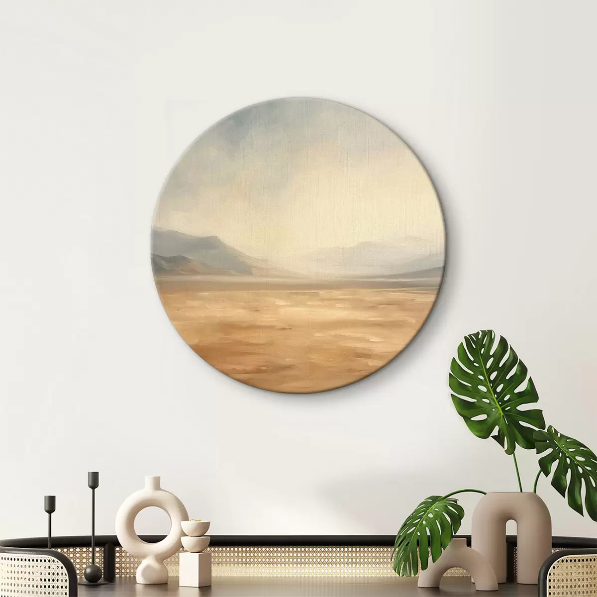Quadri rotondi Deserto con montagne sullo sfondo un paesaggio tranquillo r39835