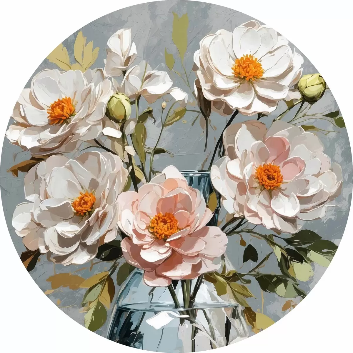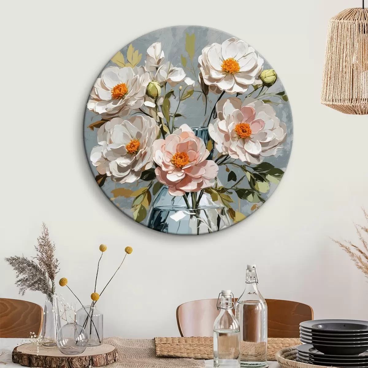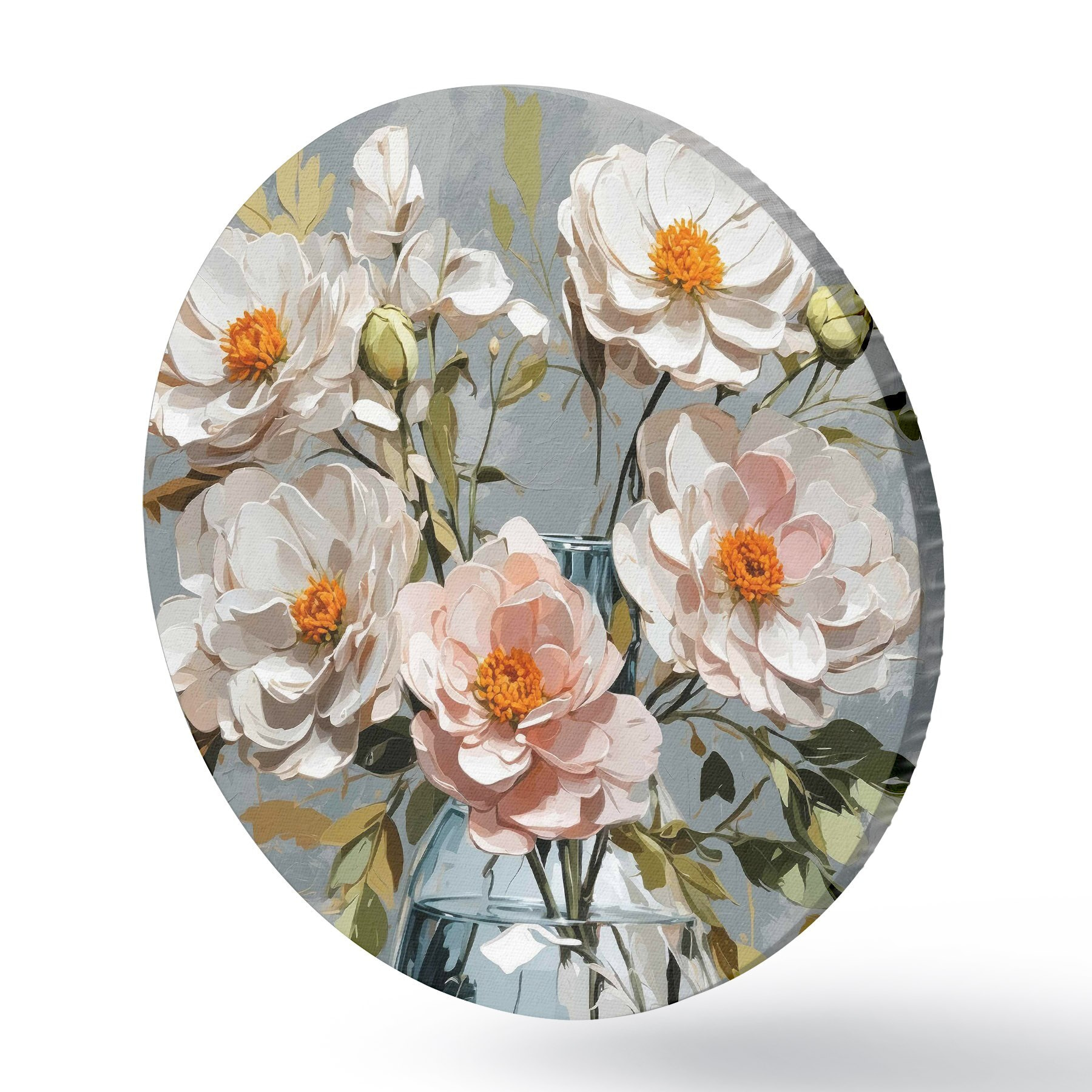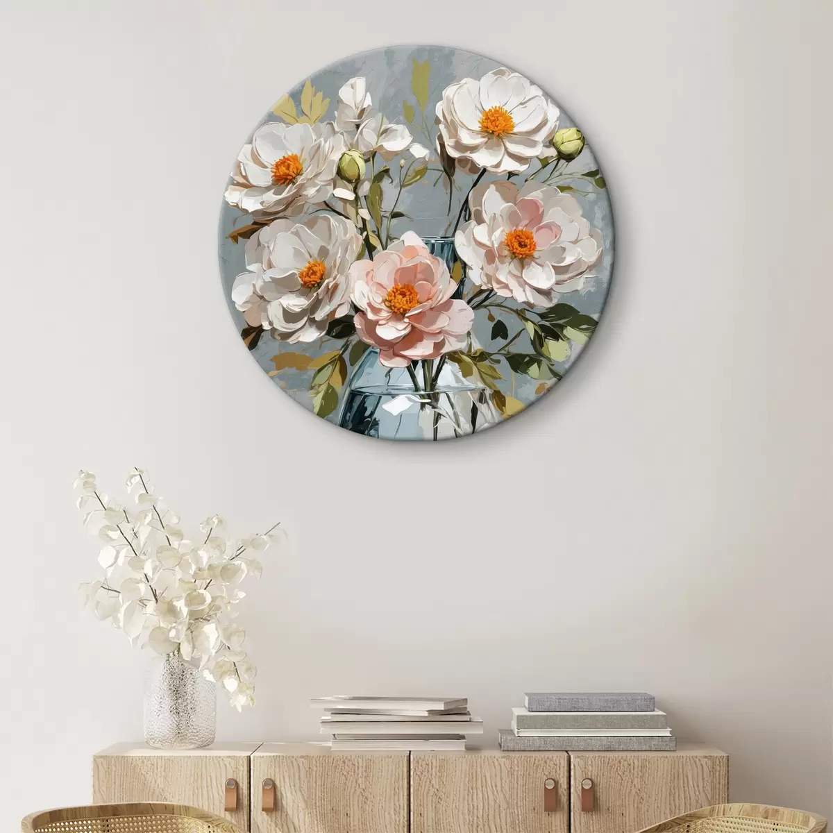 Quadri rotondi Fiori bianchi in un vaso trasparente r39850