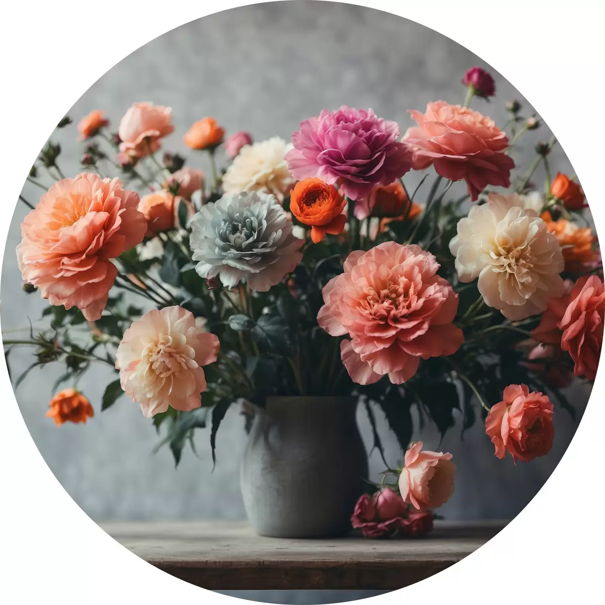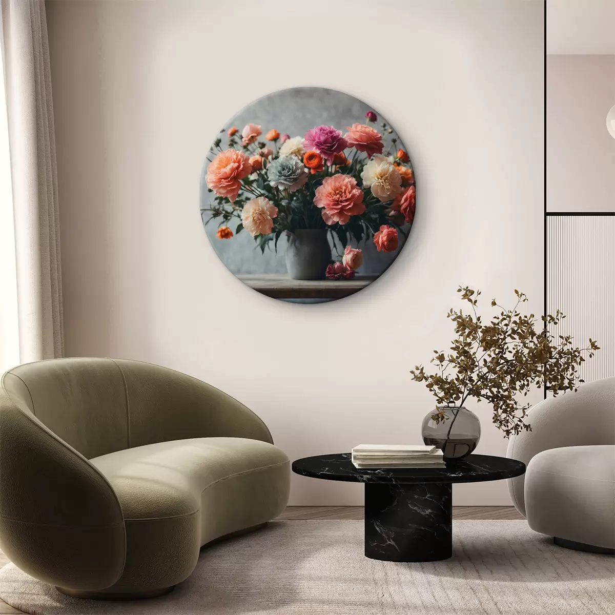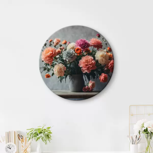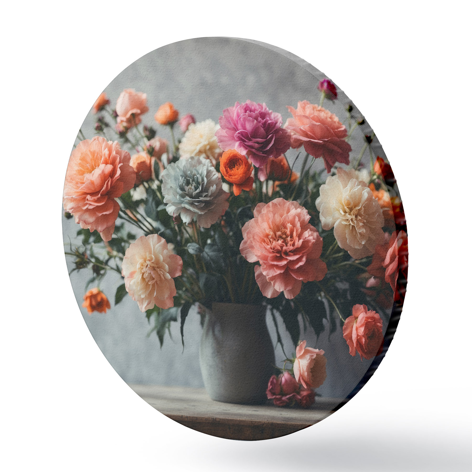Quadri rotondi Mazzo di fiori in un vaso su un tavolo r39859