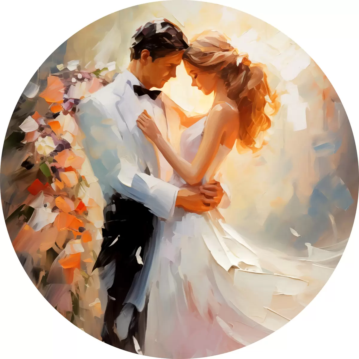 Quadri rotondi Sposa e sposo che ballano, dipinto ad olio r39925