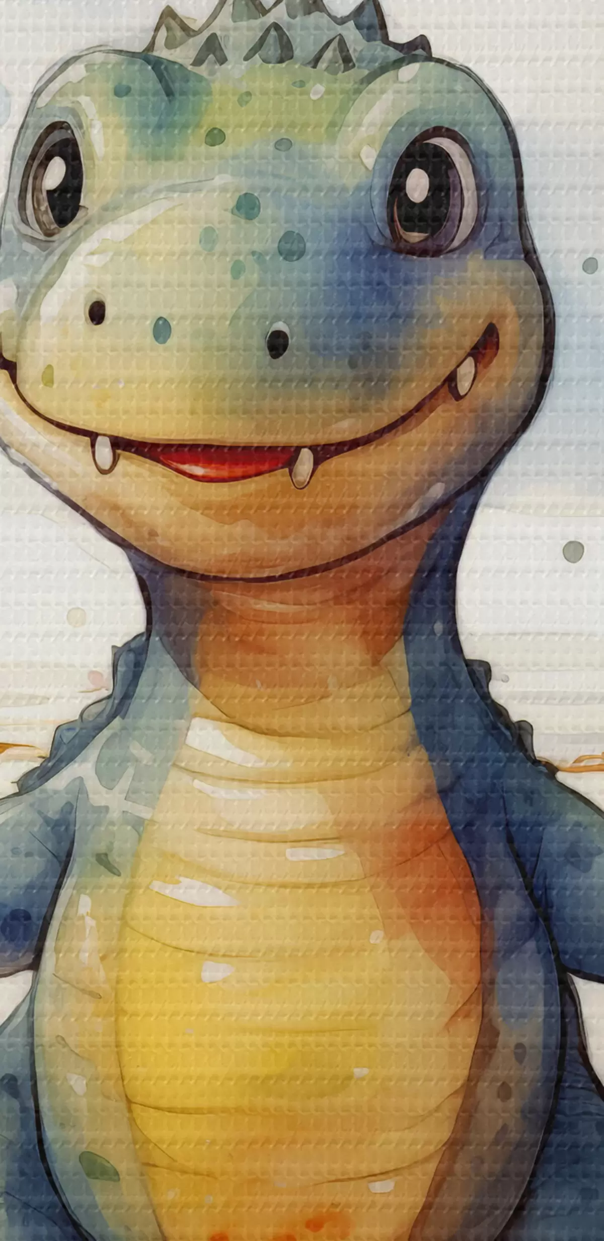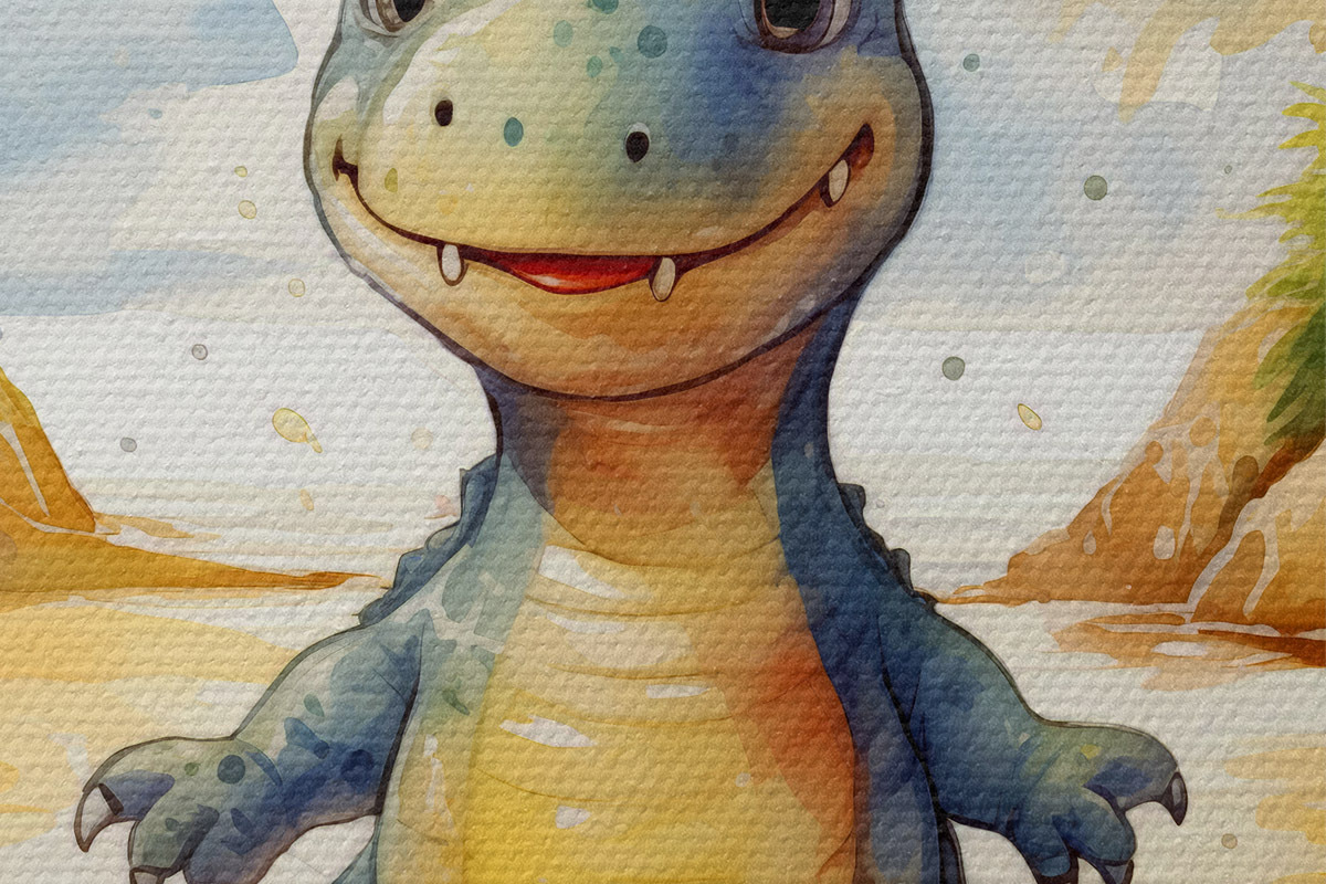 Immagine Dinosauro nel fiume sullo sfondo di montagne e felci acquerello Nr r39930