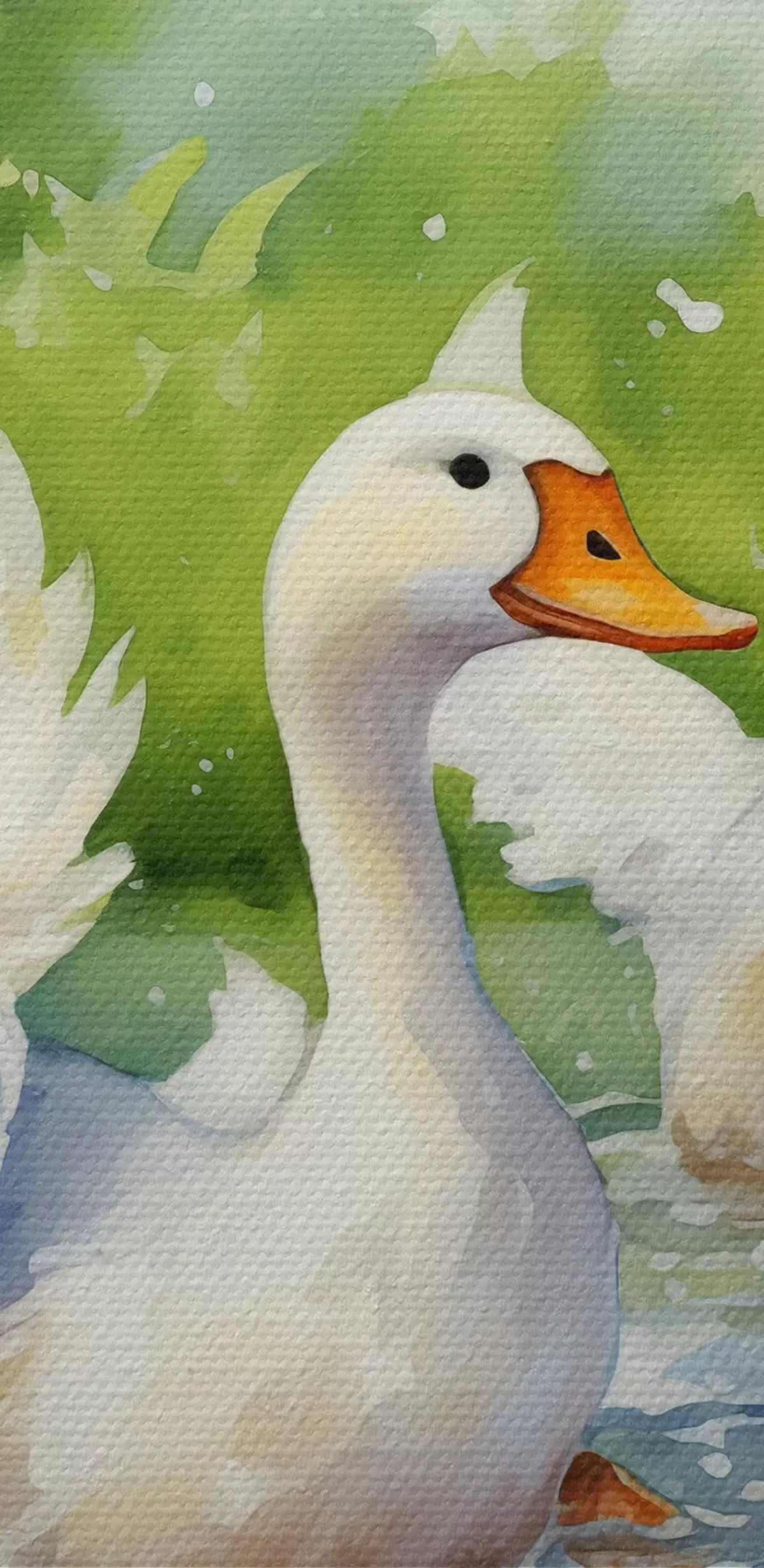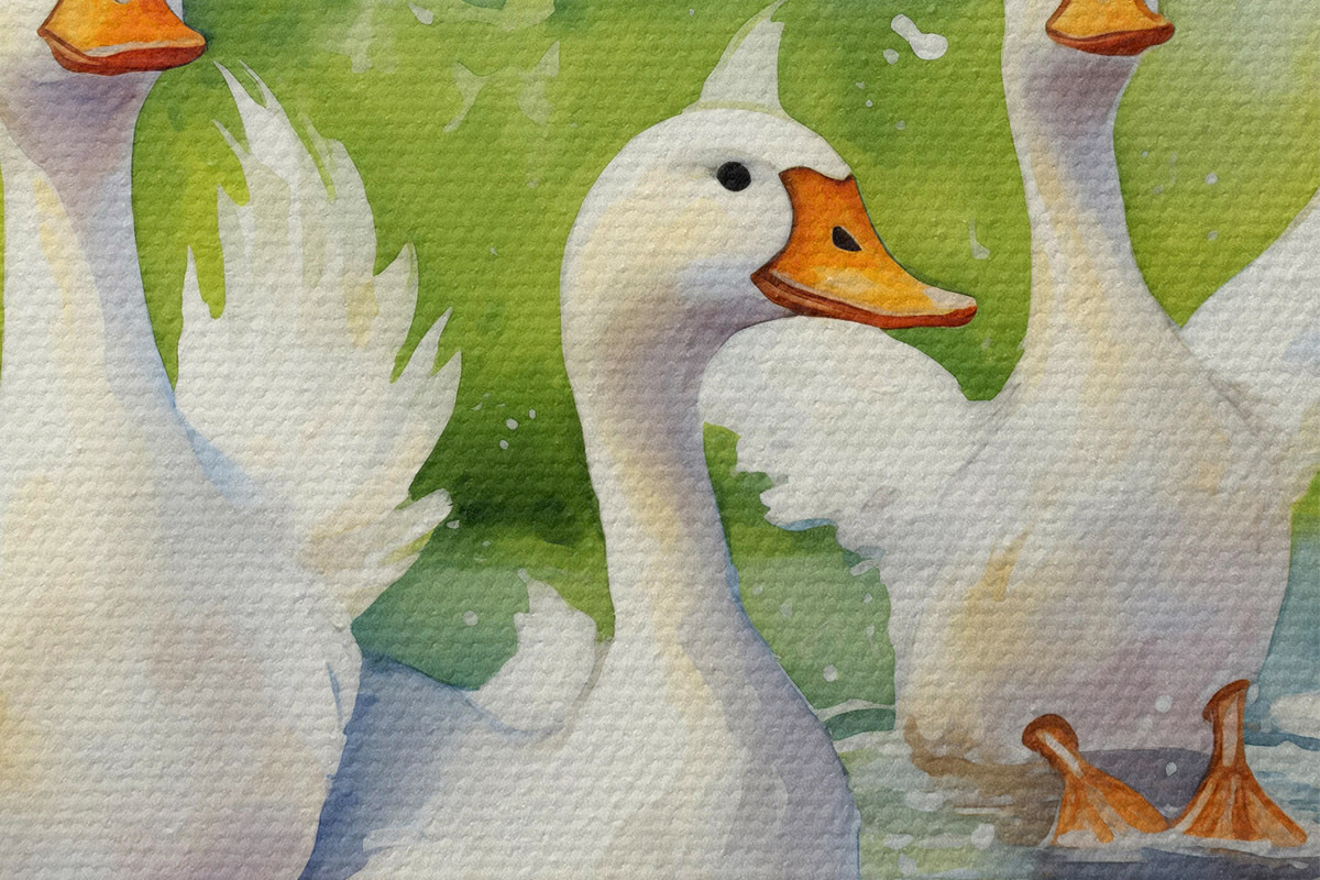 Immagine Oche bianche che fanno il bagno in uno stagno dipinto ad acquerello Nr r39939