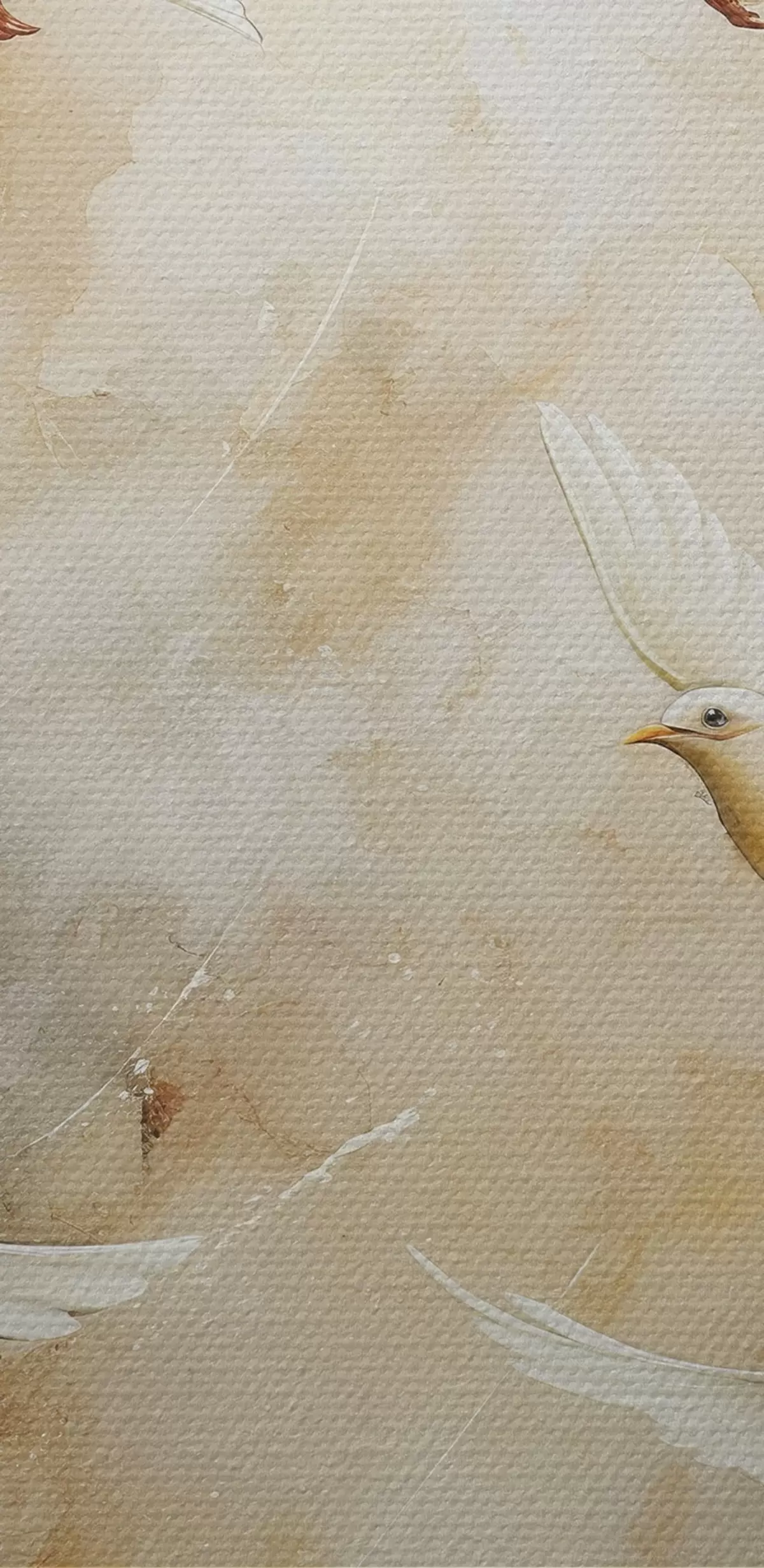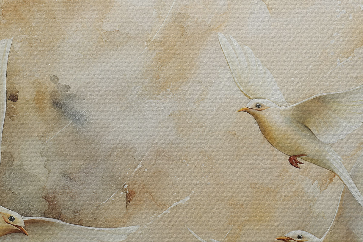 Immagine Piccioni volanti acquerellati, colori tenui beige e bianco Nr r39977