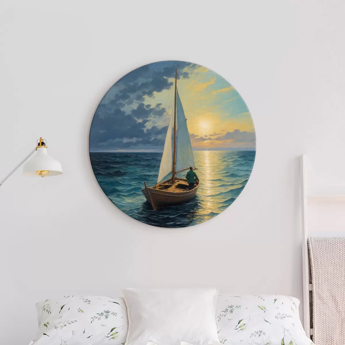 Quadri rotondi Uomo che galleggia sul mare in una barca r40053