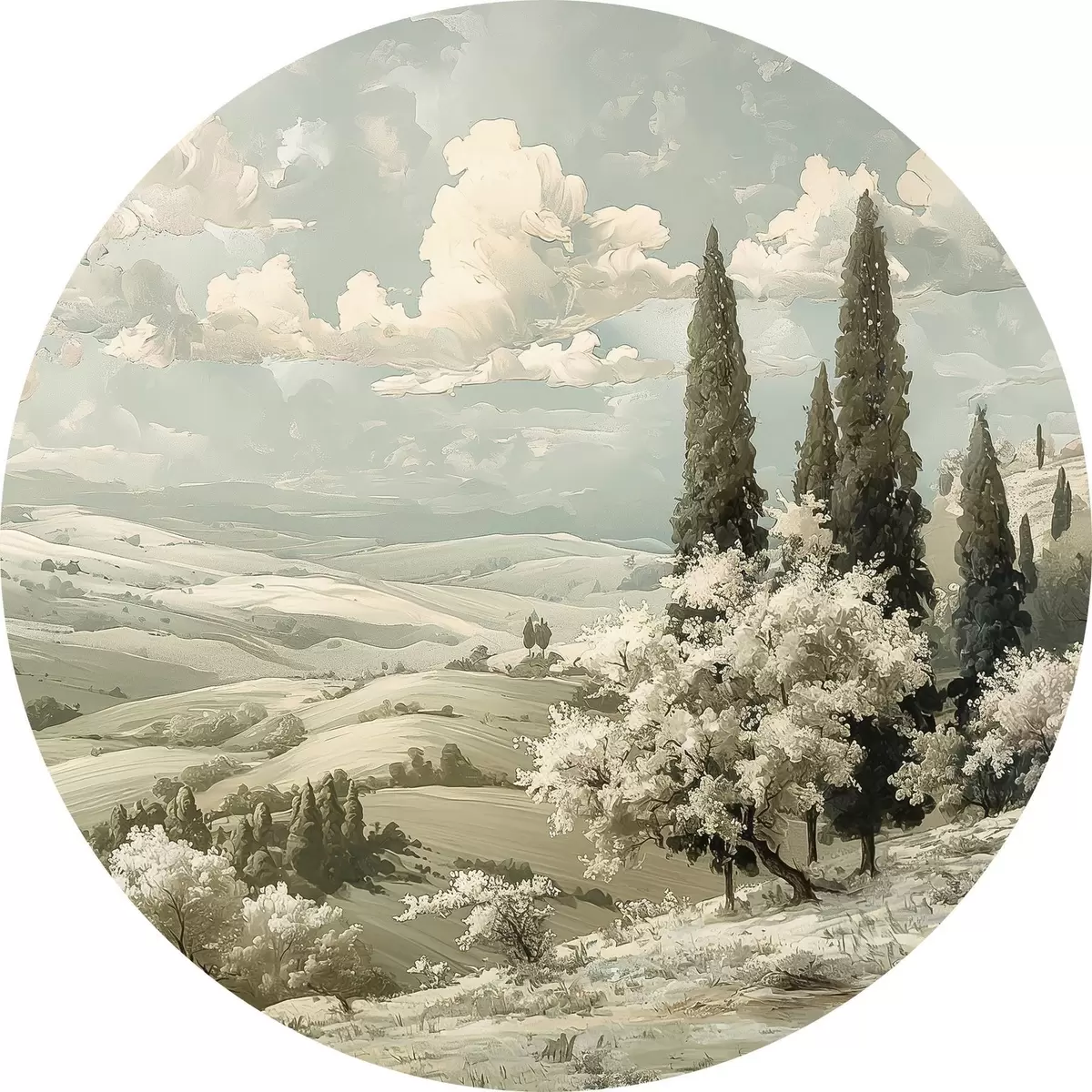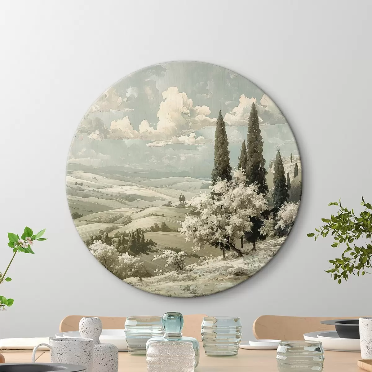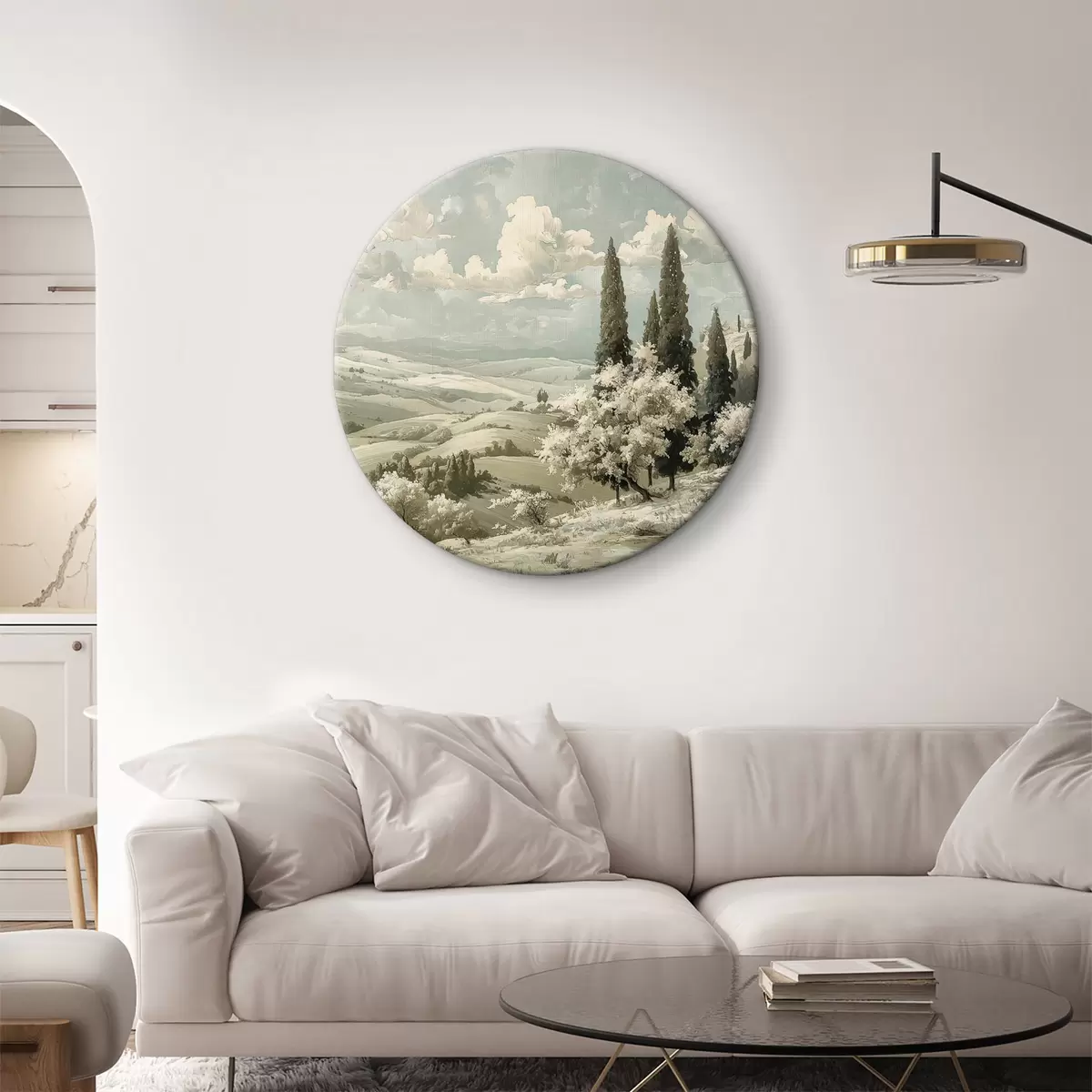 Quadri rotondi Paesaggio estivo, stile vintage, colori pastello, disegno acrilico, castello r40084