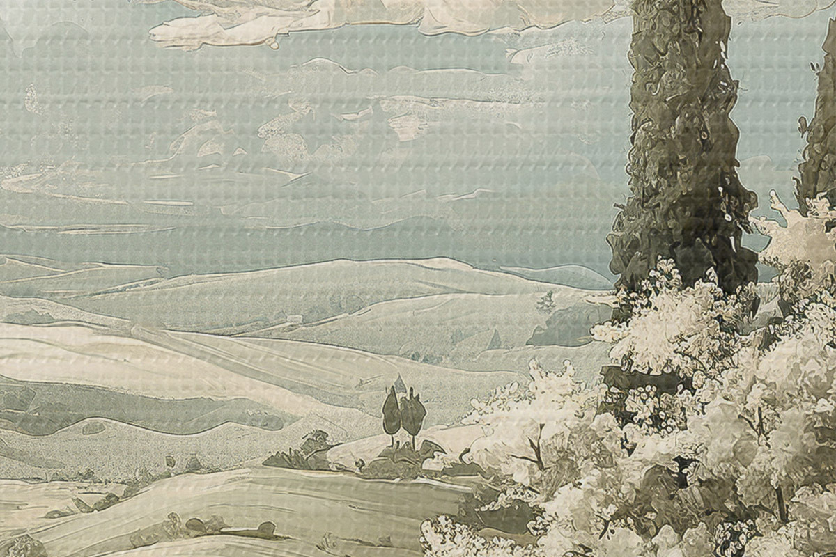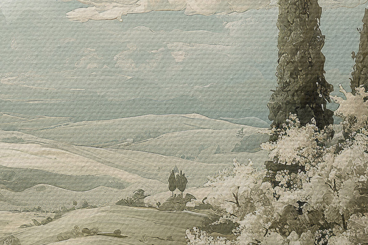 Immagine Paesaggio estivo, stile vintage, colori pastello, disegno acrilico, castello Nr r40084