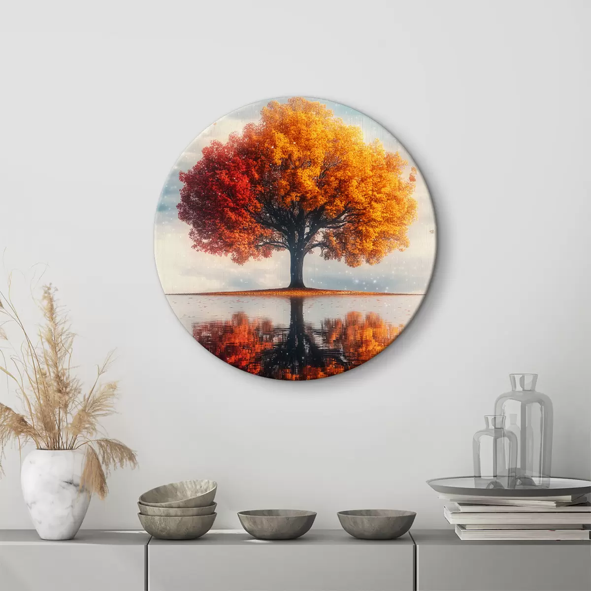Quadri rotondi Albero con riflesso nell'acqua r40126