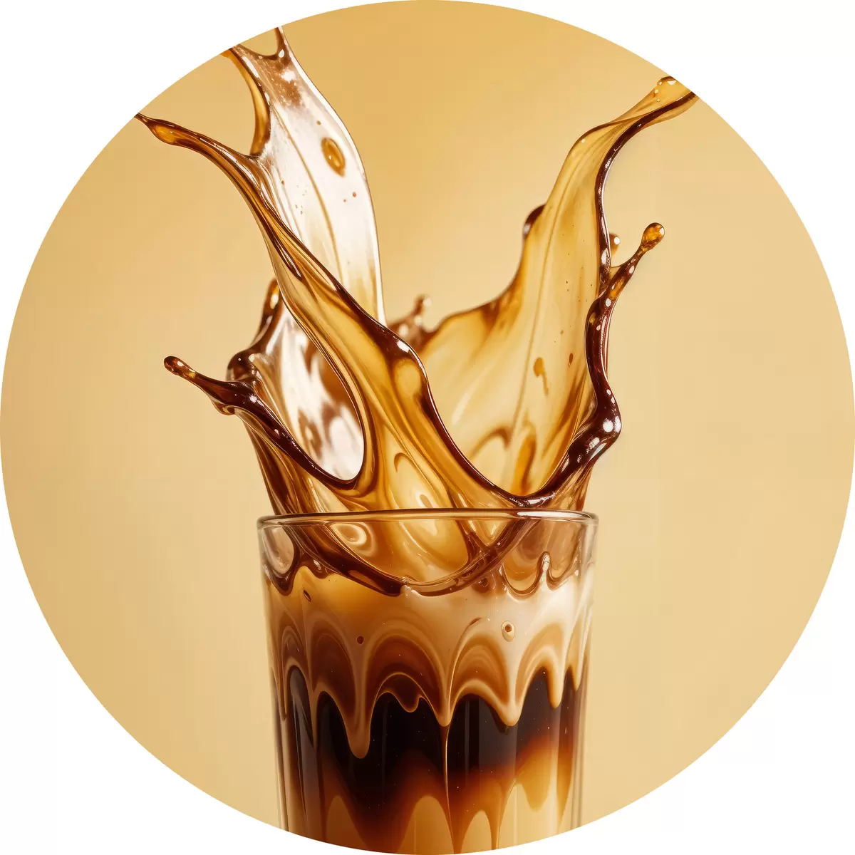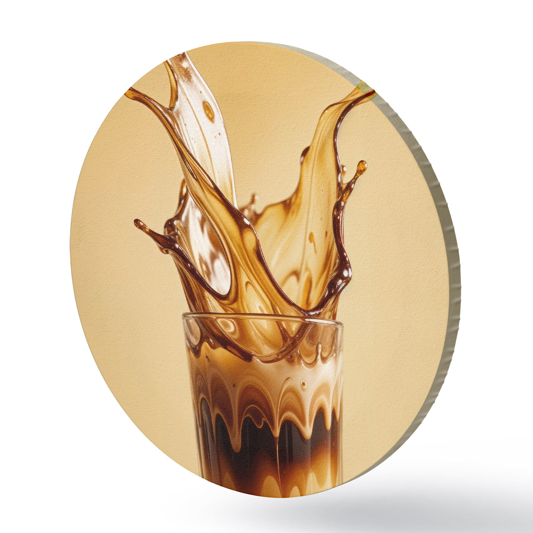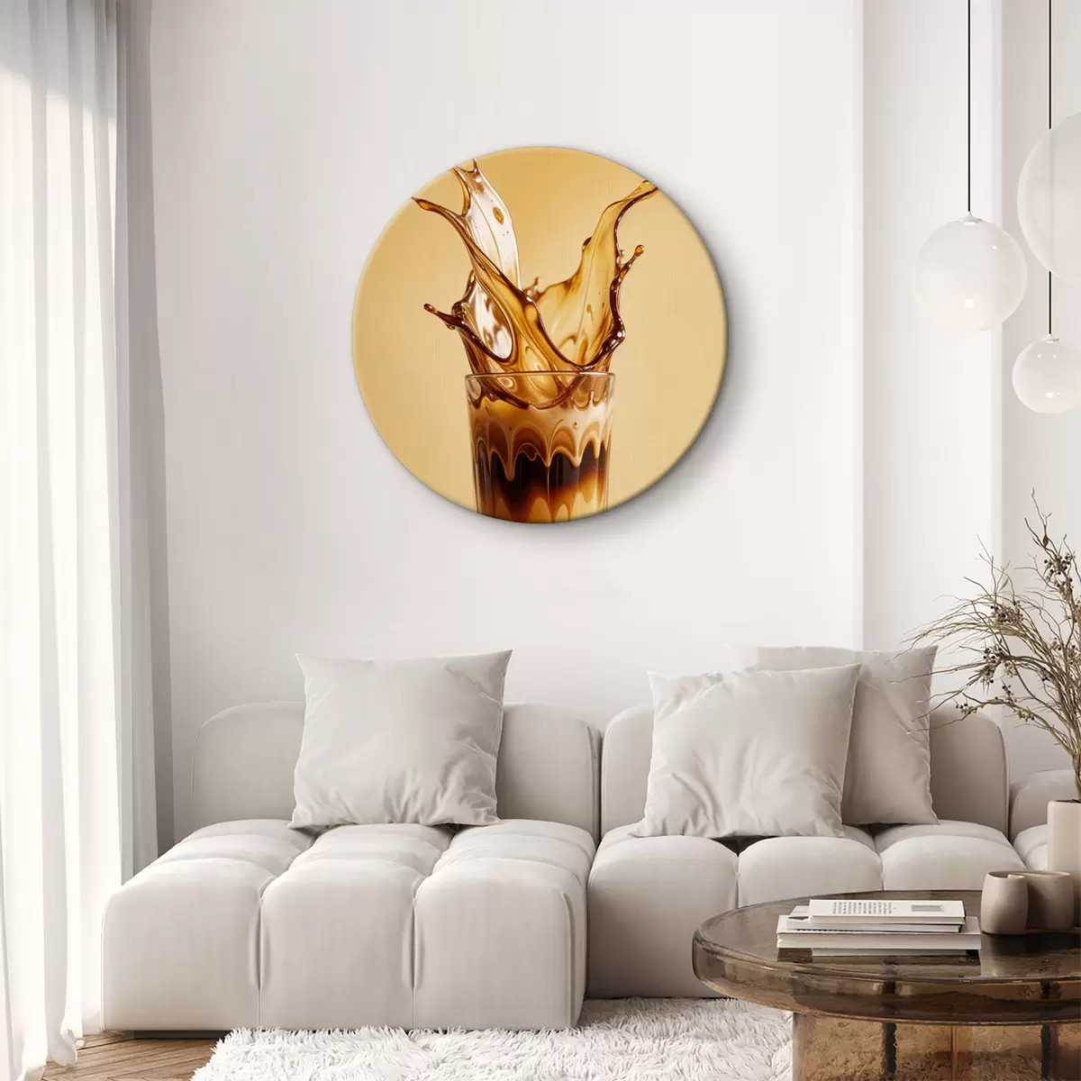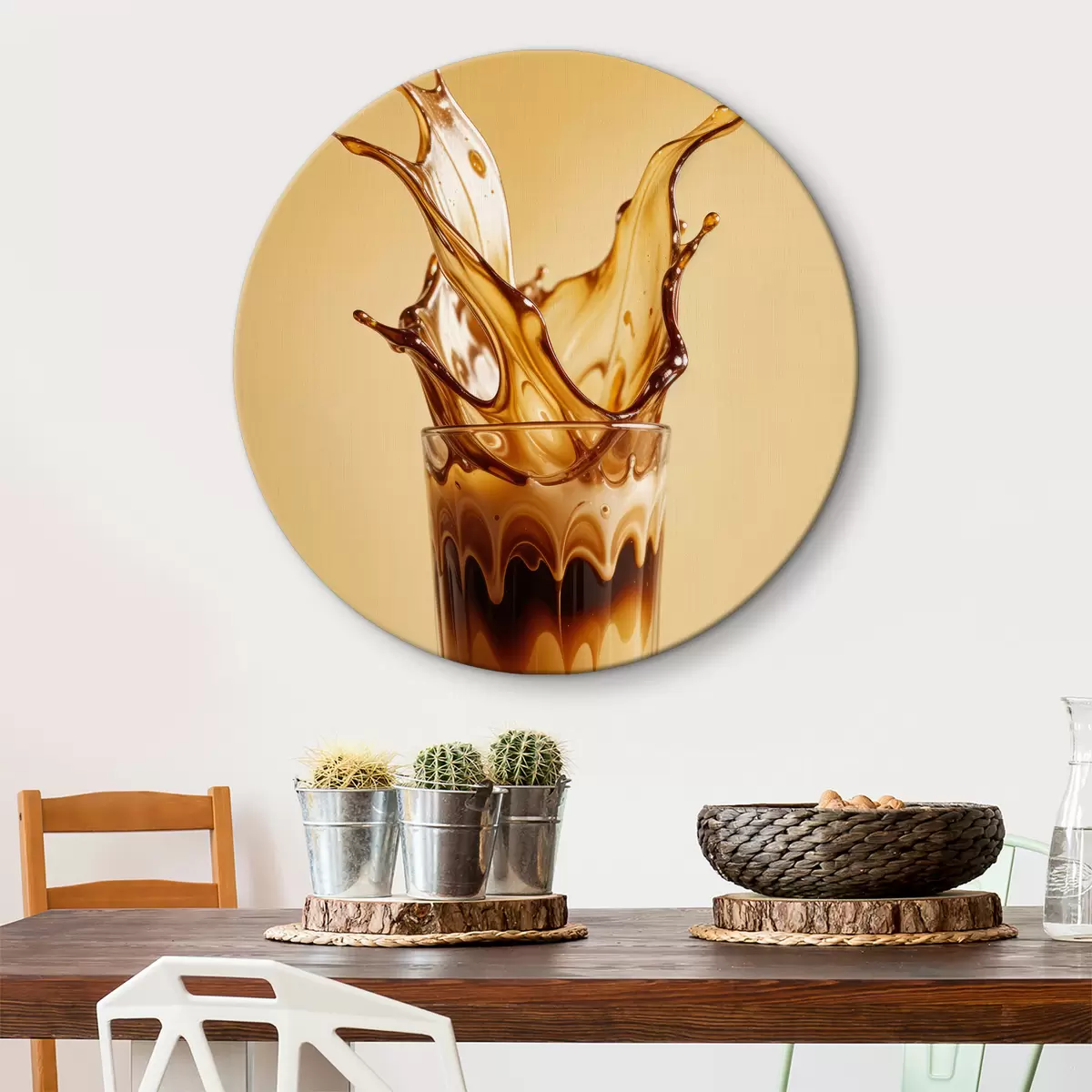 Quadri rotondi Un bicchiere pieno di caffè con un effetto schizzo drammatico che crea un'immagine astratta e dinamica r40165