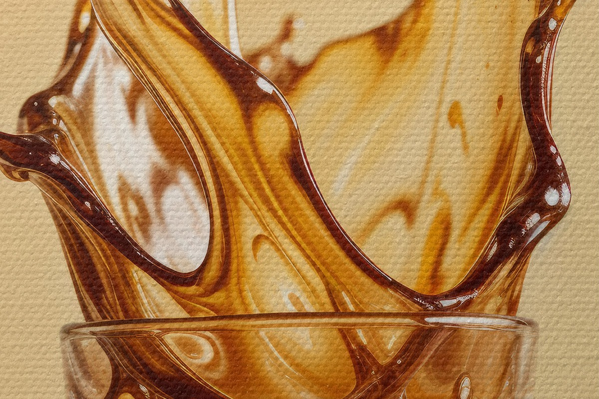 Immagine Un bicchiere pieno di caffè con un effetto schizzo drammatico che crea un'immagine astratta e dinamica Nr r40165