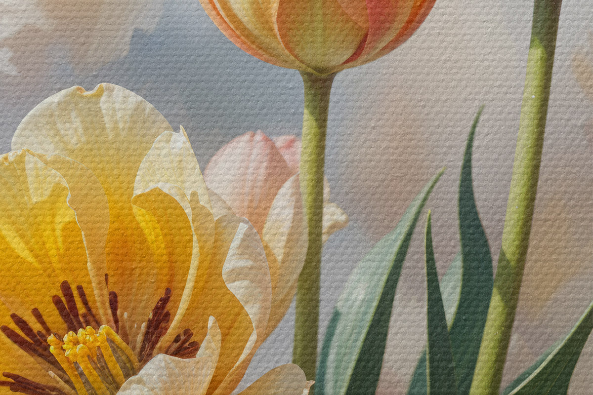 Sono disponibili tre tipi di materiale per l'ordinazione: Economic Canvas - materiale denso e resistente per la stampa digitale, identico alla tela del pittore, superficie impermeabile, riproduzione realistica dei dettagli, materiale a grana media. Premium Canvas - la trama ricorda la tela di un pittore (piccoli fili intrecciati). Riproduzione morbida e dettagliata dell'immagine su una superficie opaca. Eco-Premium - tessuto di alta qualità in 100% cotone. Grazie alle fibre naturali di cotone, il materiale è durevole e resistente all'usura. Eccellente riproduzione dei colori e dei dettagli.