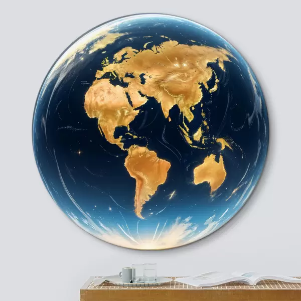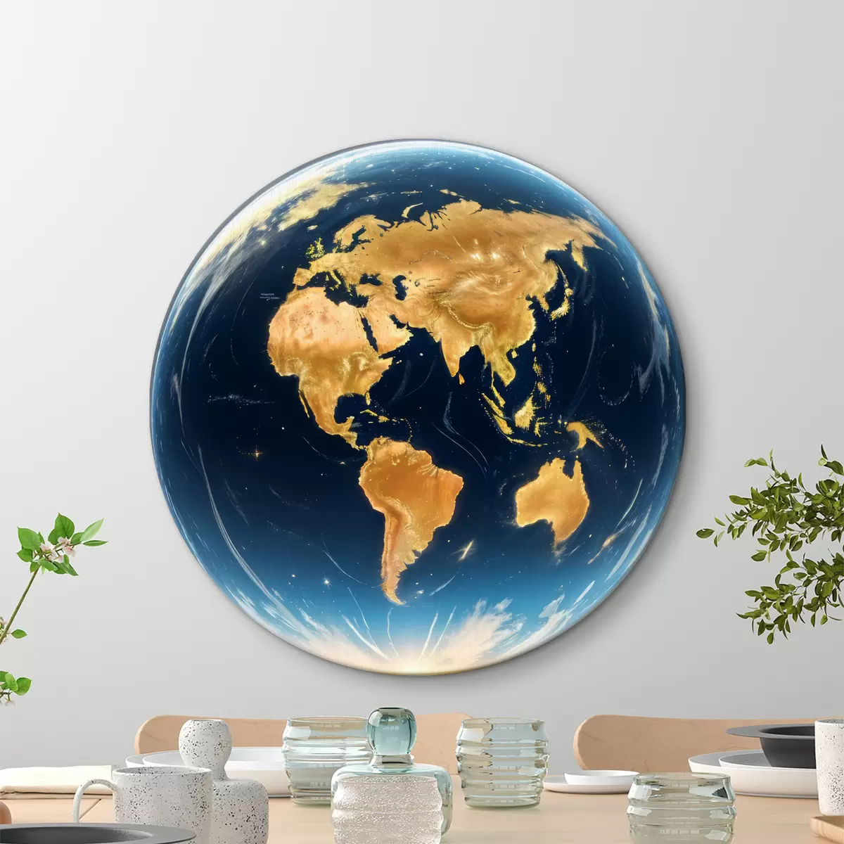 Quadri rotondi Un'immagine dettagliata e fotorealistica del pianeta Terra che fluttua in un paesaggio spaziale r40178