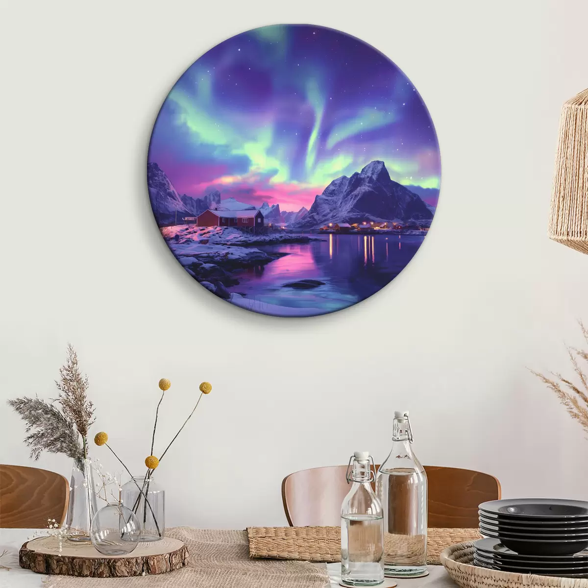 Quadri rotondi Aurora boreale alle Lofoten, Norvegia, natura, inverno r40298