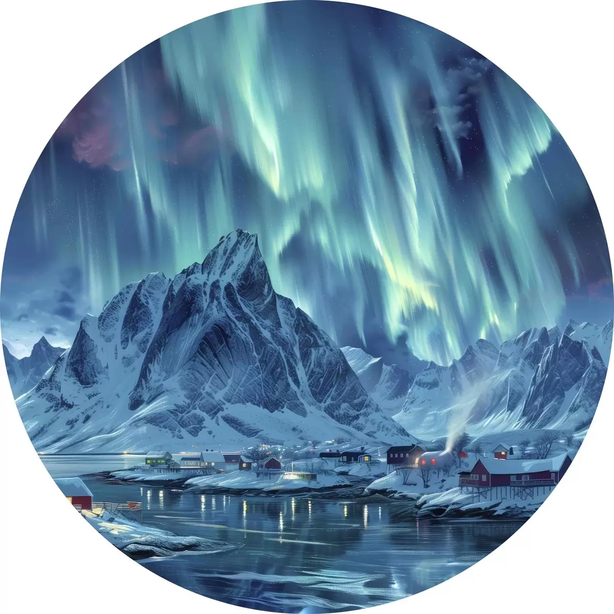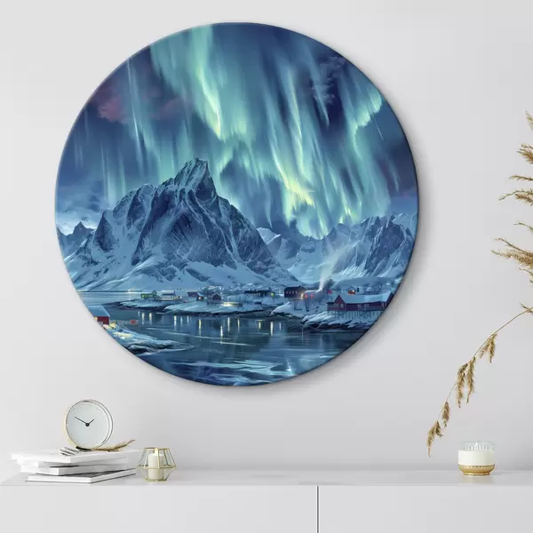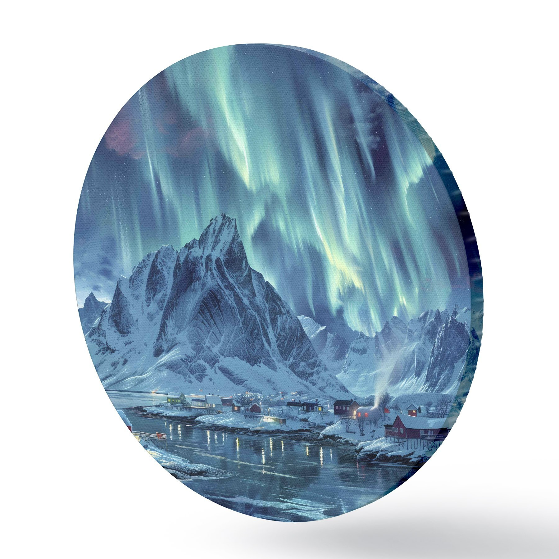 Quadri rotondi Magica aurora boreale, villaggio invernale in Norvegia r40301
