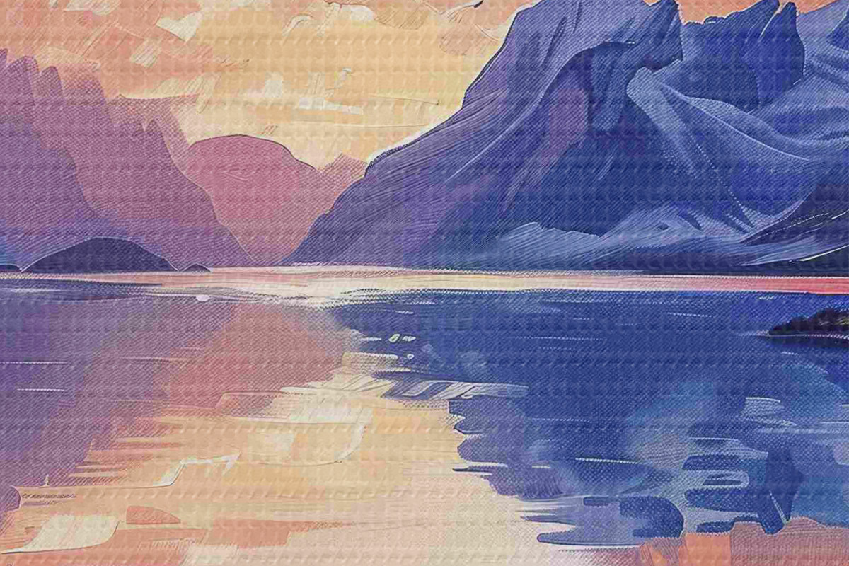 Immagine Tramonto in montagna, fiume, pittura acrilica Nr r40305
