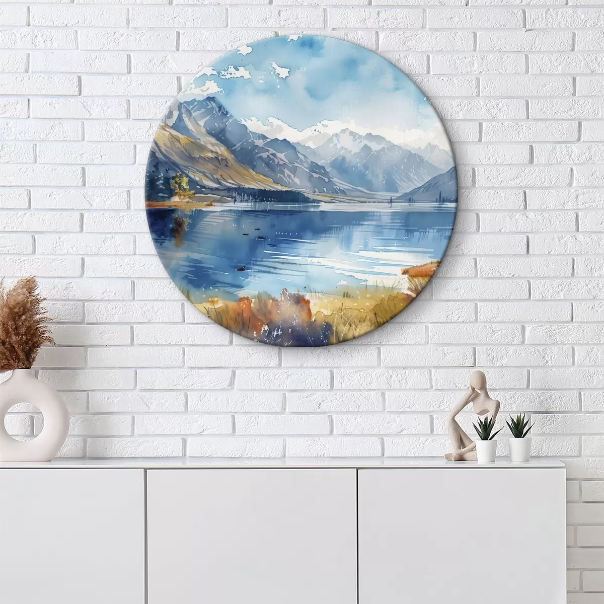 Quadri rotondi Acquerello paesaggio montano, colori autunnali r40308
