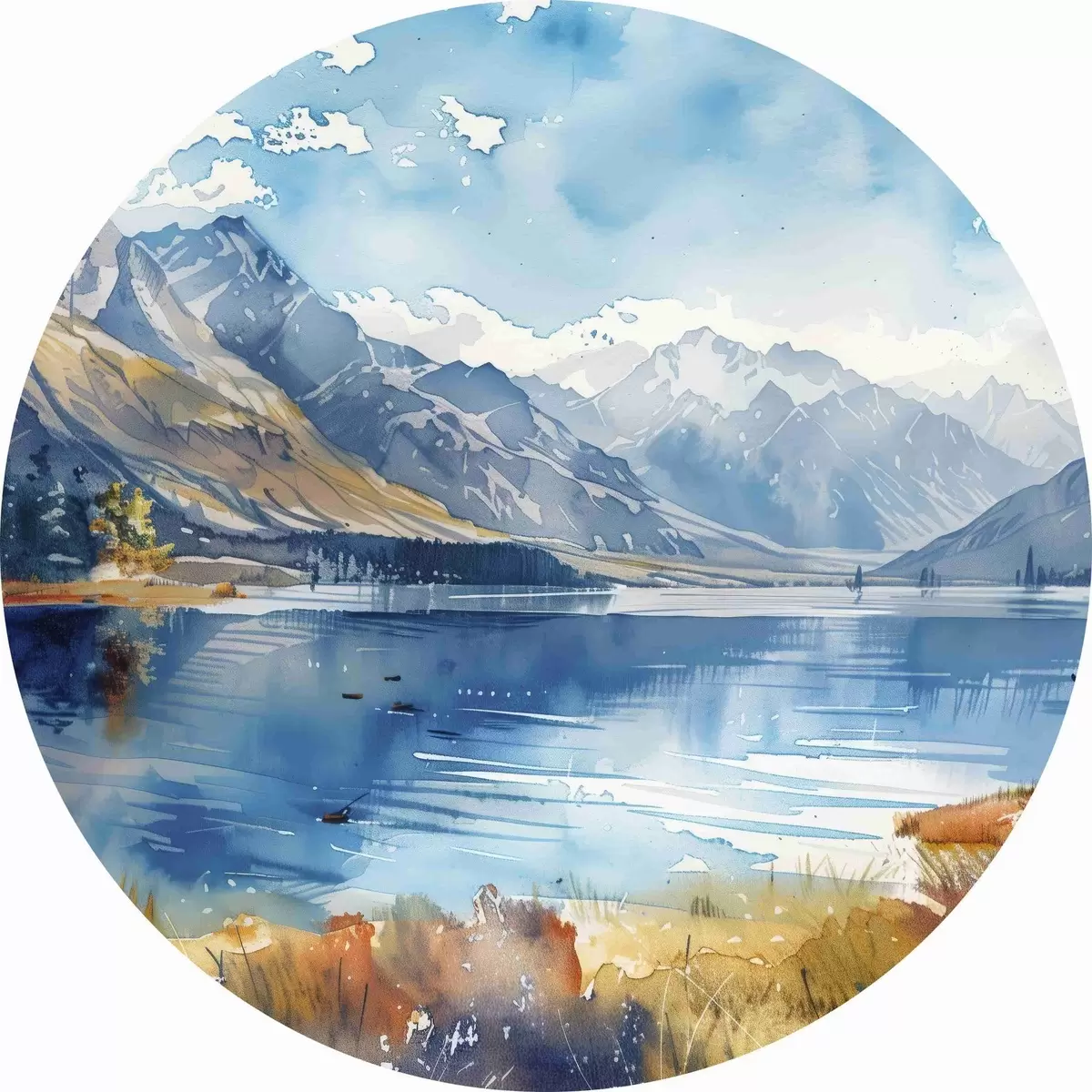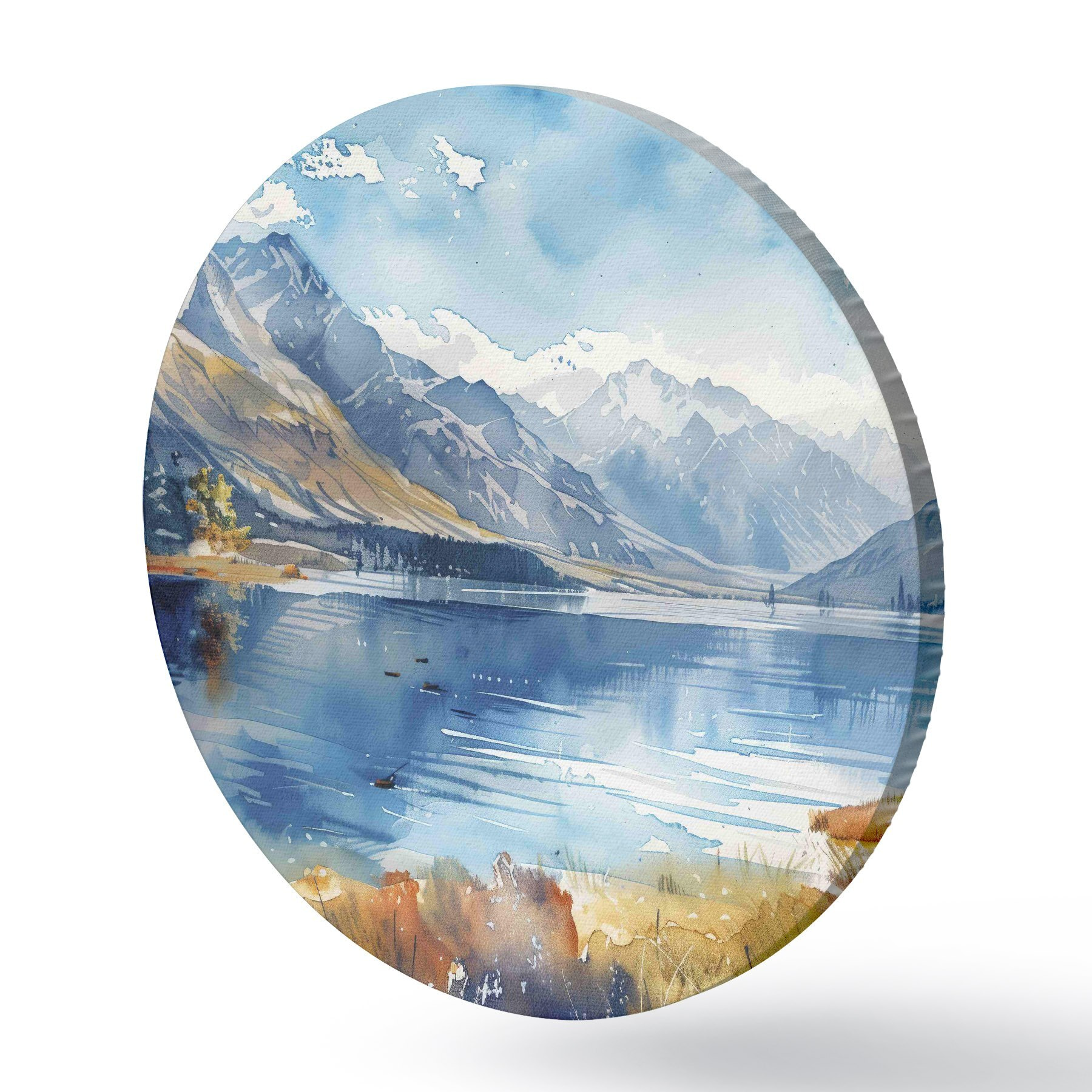 Quadri rotondi Acquerello paesaggio montano, colori autunnali r40308