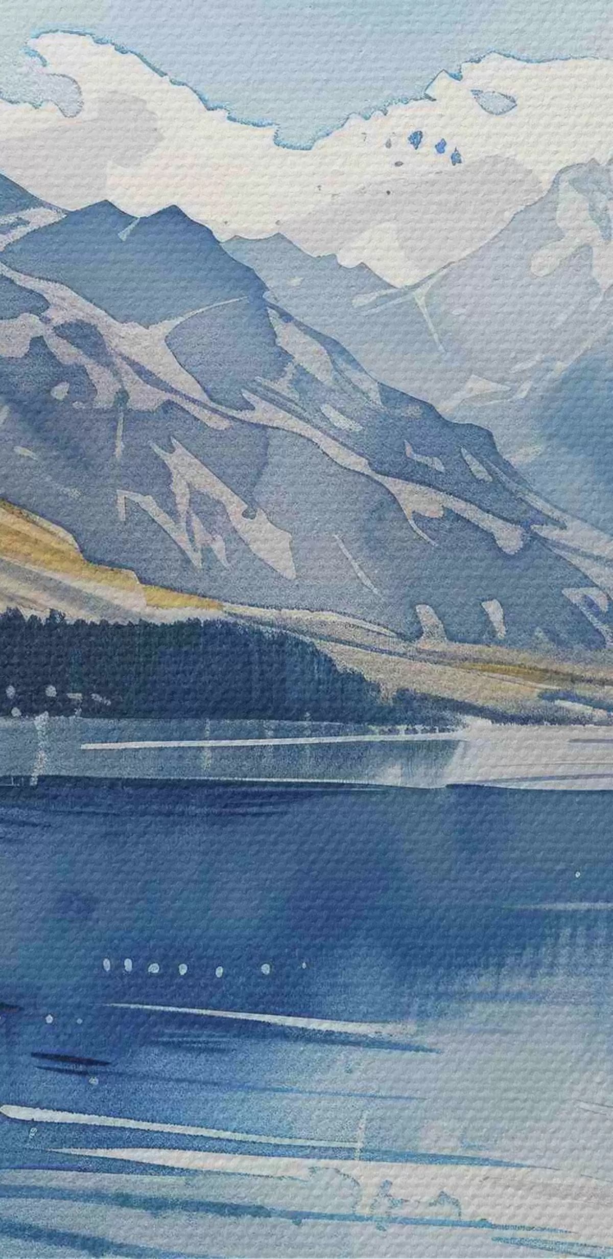 Immagine Acquerello paesaggio montano, colori autunnali Nr r40308