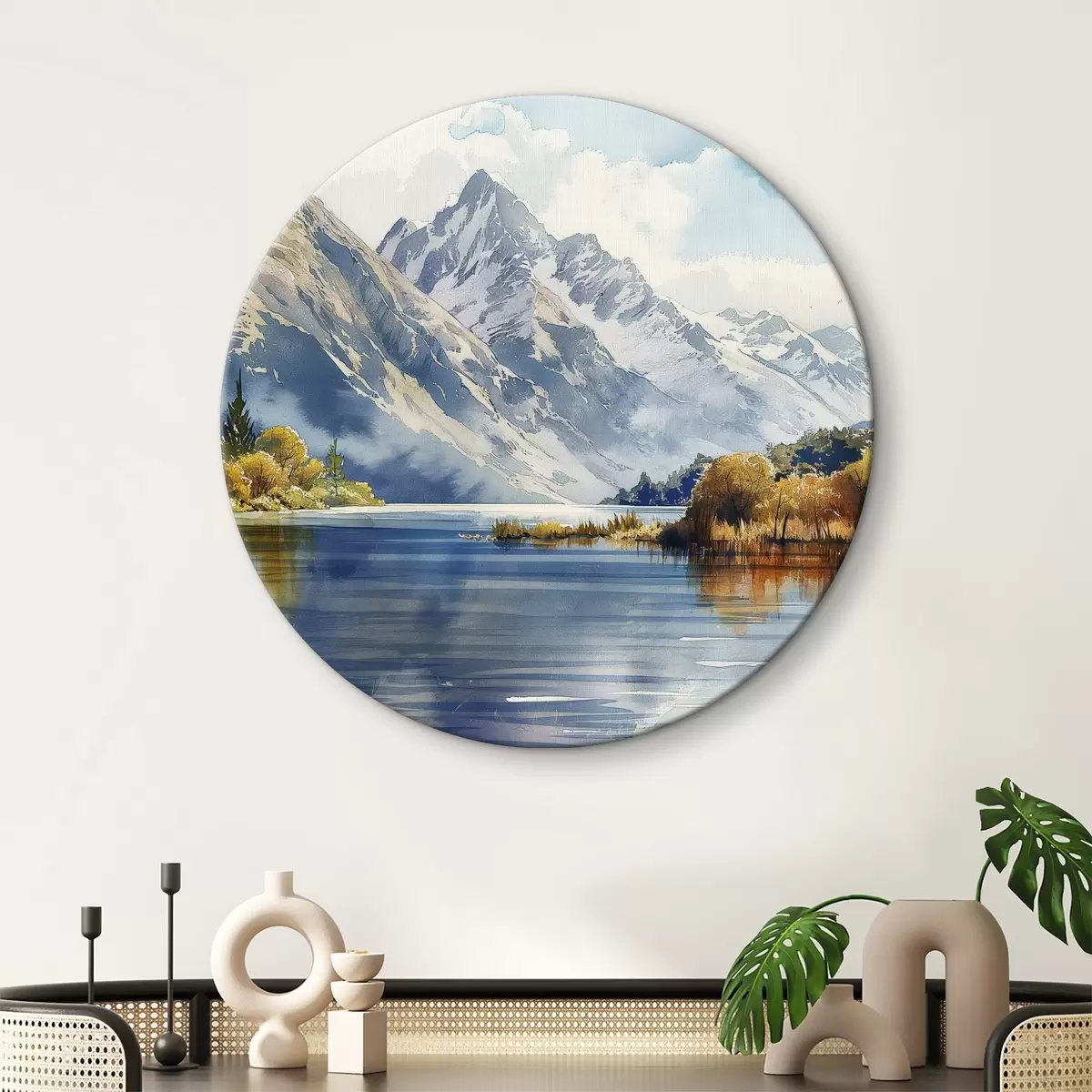 Quadri rotondi Paesaggio autunnale di montagne, fiume, alberi r40309