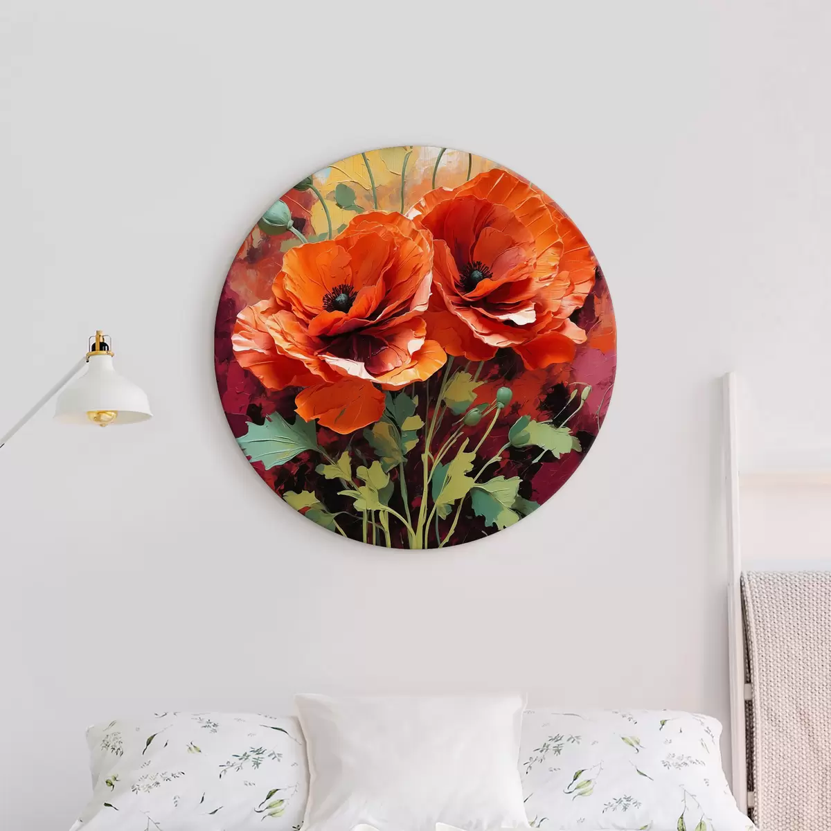 Quadri rotondi Papaveri su sfondo acrilico astratto r40323