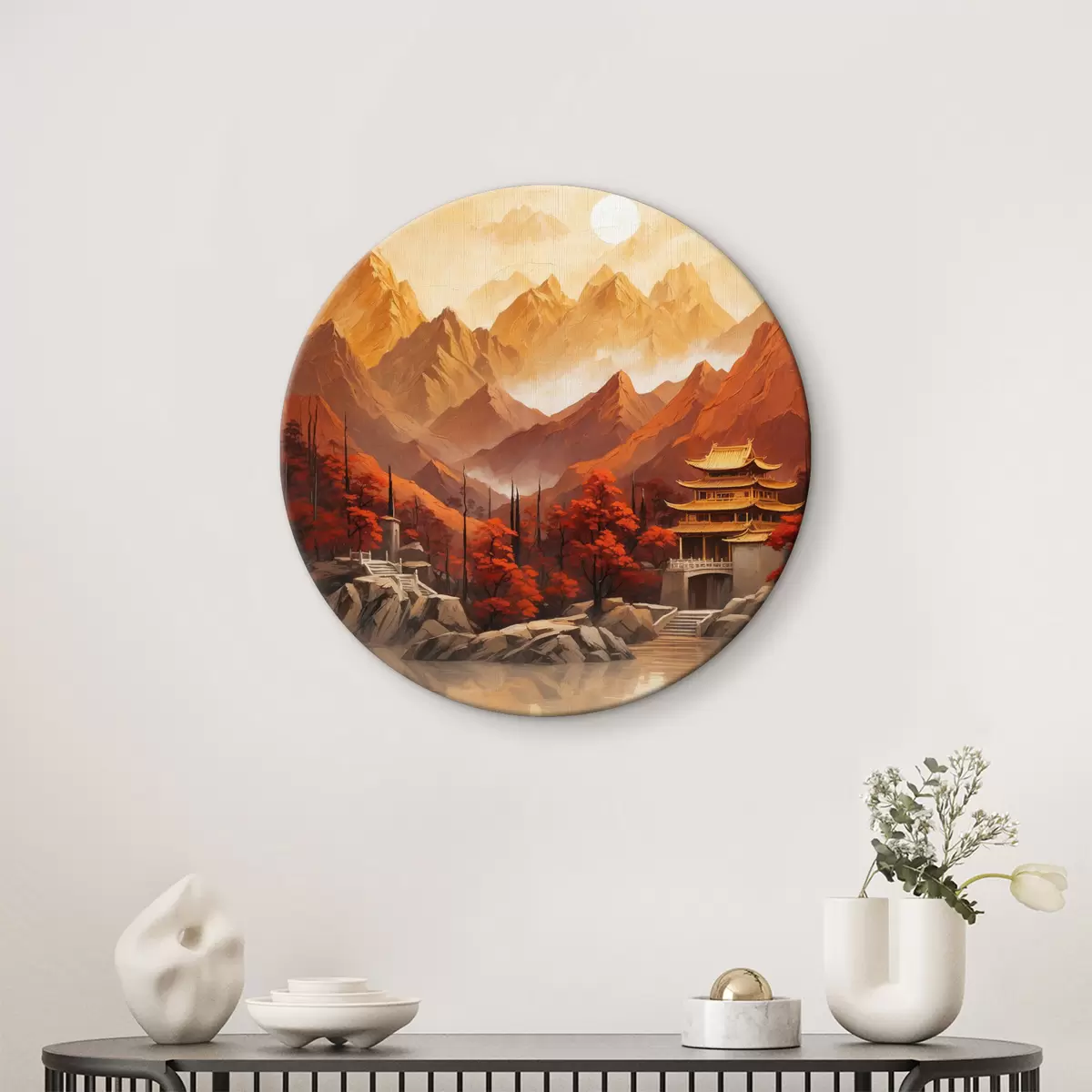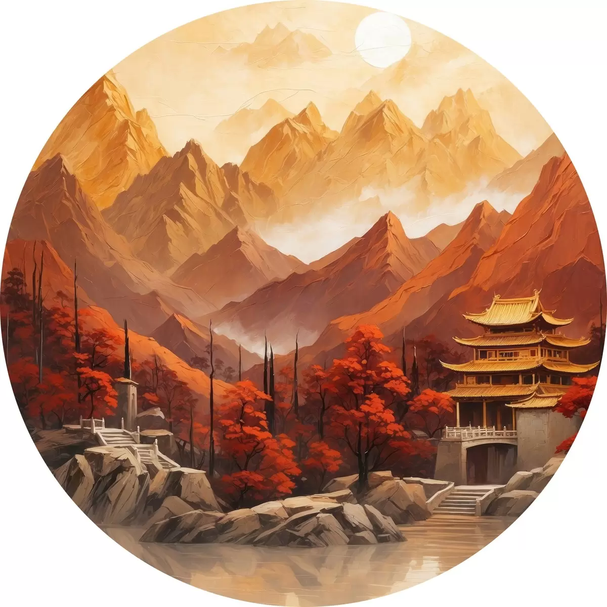 Quadri rotondi Edificio storico cinese in montagna r40330
