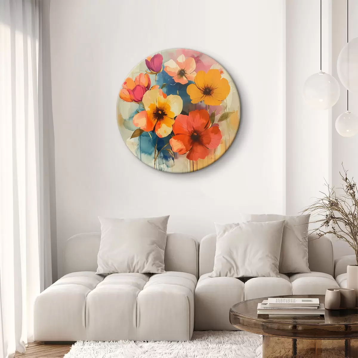 Quadri rotondi Fiori acquerellati su uno sfondo astratto r40371