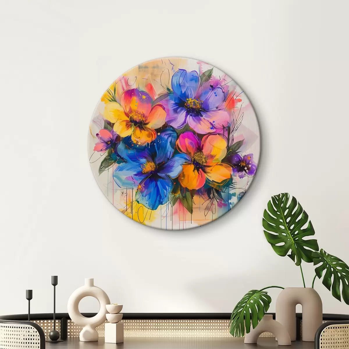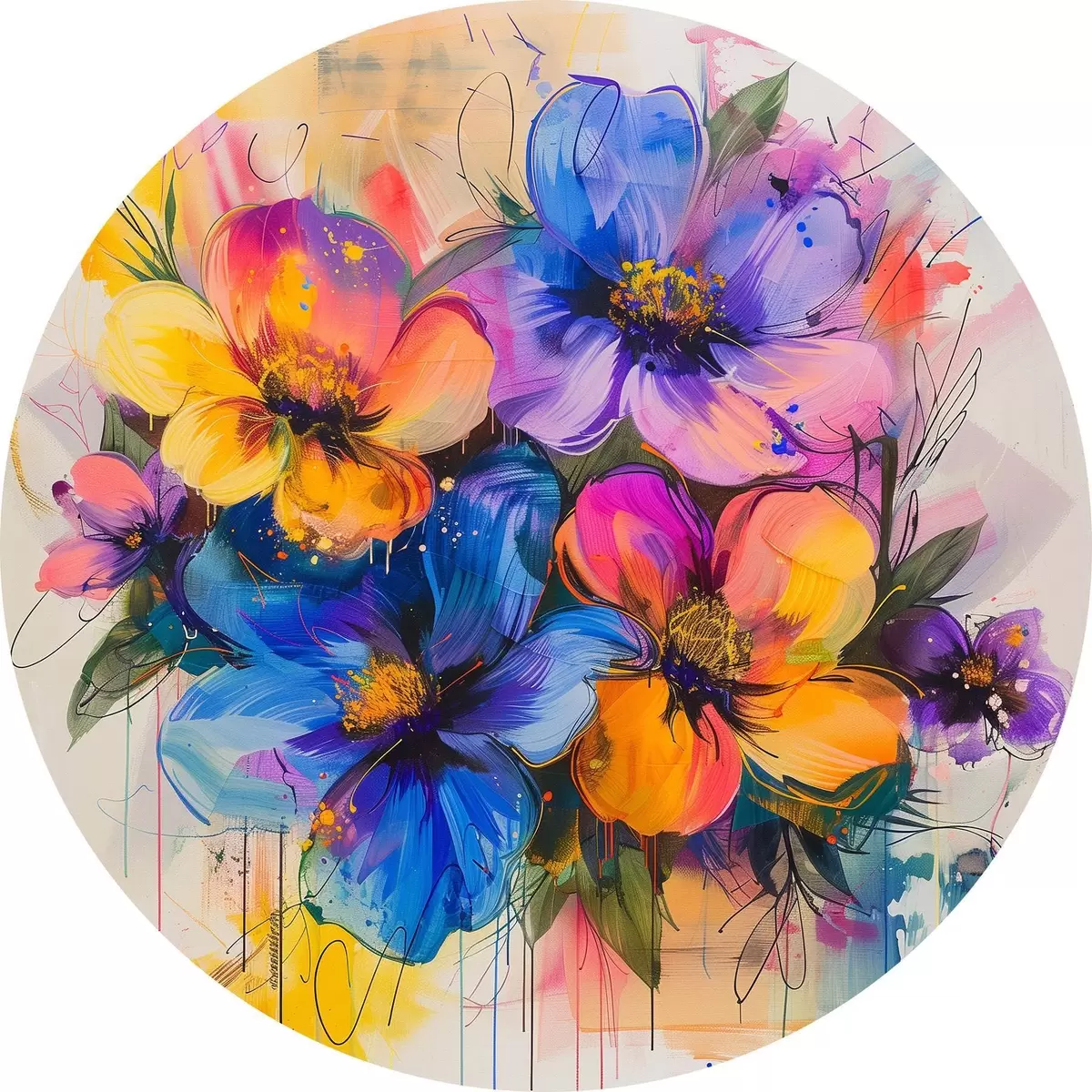 Quadri rotondi Fiori su uno sfondo astratto r40373