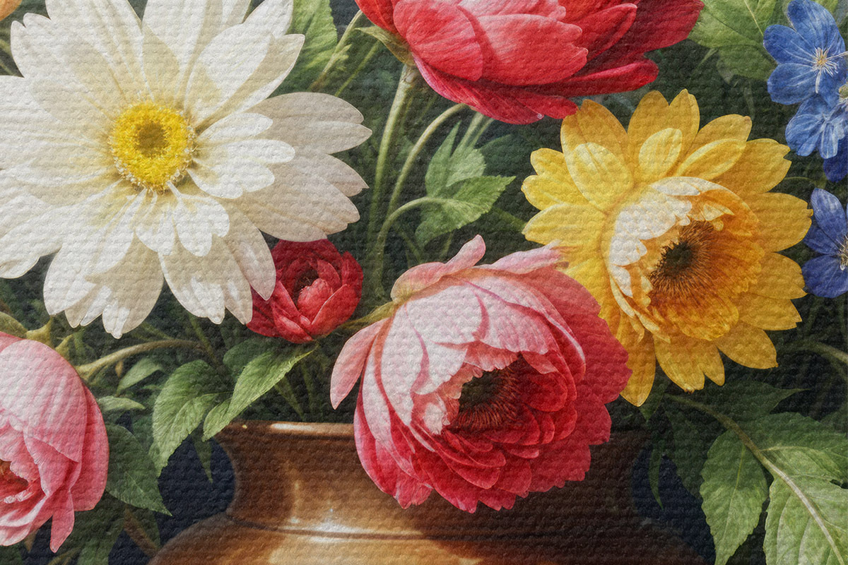 Sono disponibili tre tipi di materiale per l'ordinazione: Economic Canvas - materiale denso e resistente per la stampa digitale, identico alla tela del pittore, superficie impermeabile, riproduzione realistica dei dettagli, materiale a grana media. Premium Canvas - la trama ricorda la tela di un pittore (piccoli fili intrecciati). Riproduzione morbida e dettagliata dell'immagine su una superficie opaca. Eco-Premium - tessuto di alta qualità in 100% cotone. Grazie alle fibre naturali di cotone, il materiale è durevole e resistente all'usura. Eccellente riproduzione dei colori e dei dettagli.