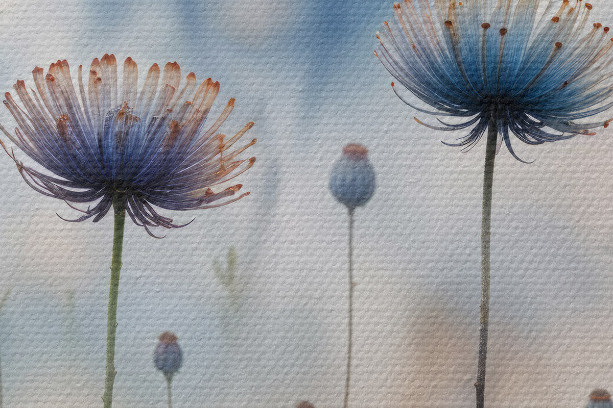 Immagine Alti fiori viola simili a denti di leone con sfondo sfocato, che creano un'atmosfera serena e sognante Nr r40414