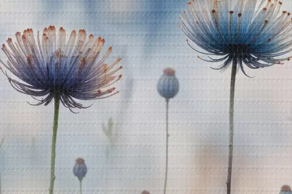 Immagine Alti fiori viola simili a denti di leone con sfondo sfocato, che creano un'atmosfera serena e sognante Nr r40414