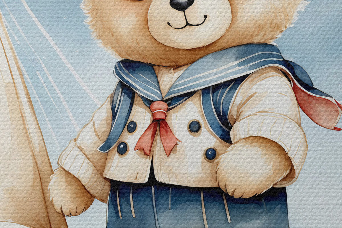 Immagine Simpatico orso acquerello in una barca con stelle nel cielo Nr r40429