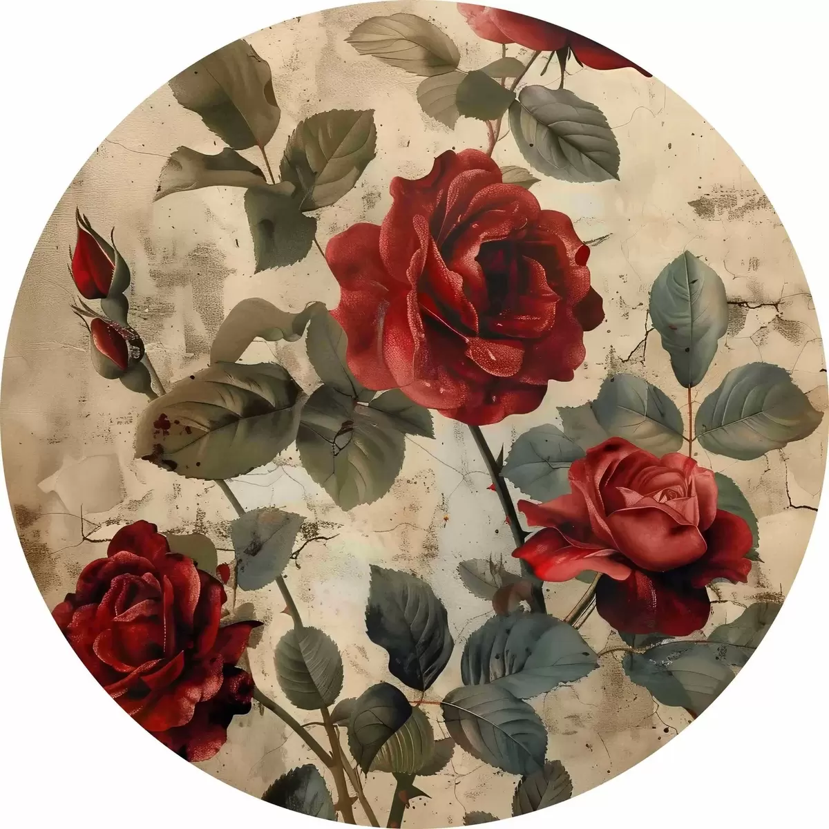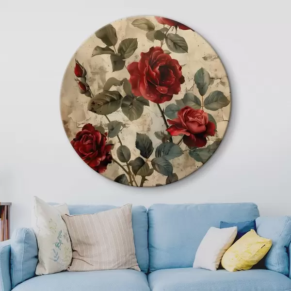 Quadri rotondi Rose rosse in stile vintage r40439