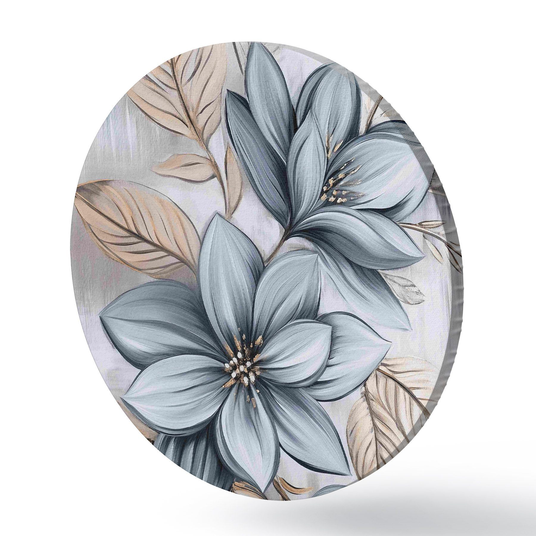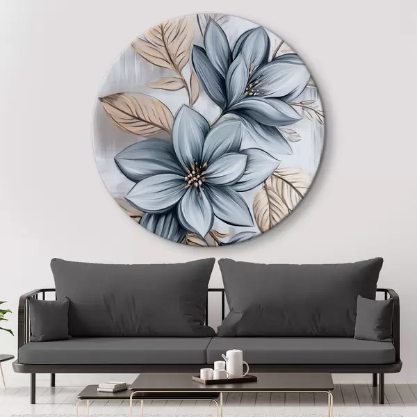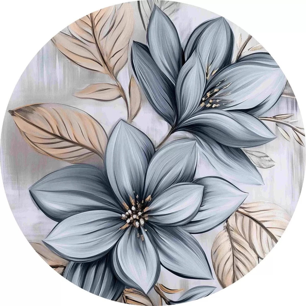 Quadri rotondi Fiori blu su sfondo grigio r40453