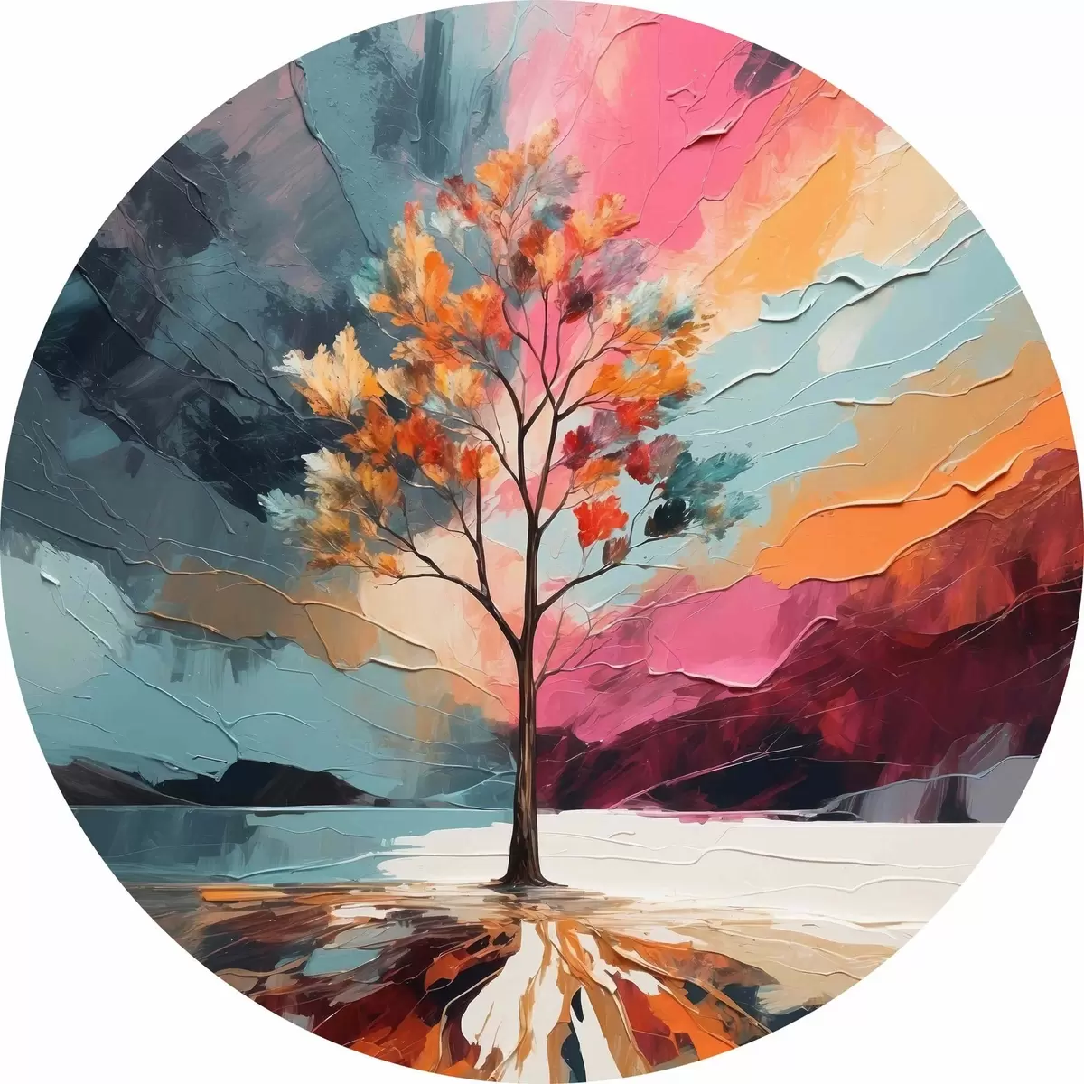 Quadri rotondi Pittura acrilica astratta con albero r40461